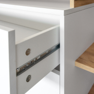 Современная фурнитура, использованная в производстве гостиной "Бэль", отличается высокой надёжностью и долговечностью. Распашные двери всех модулей гостиной "Бэль" на четырёхшарнирных петлях, выдвижные ящики-фолдинги на шариковых направляющих.