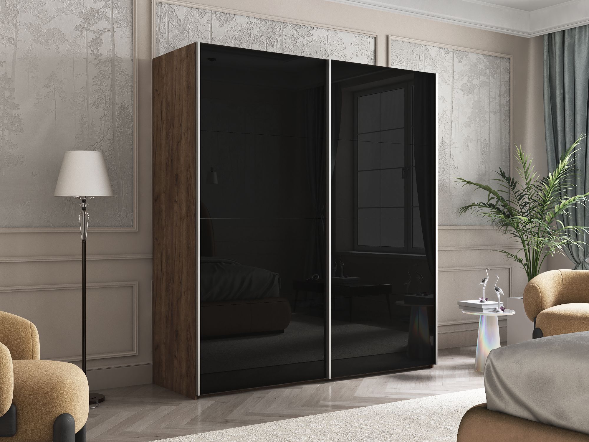 Отзывы о Столплит Шкаф Эста дуо Стекло черное 2400 х 2000 х 660 Дуб/крафт/табак