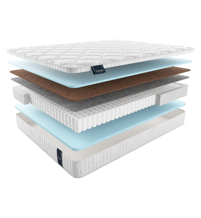 Матрас MaterLux Mintaro из коллекции Light — пружинная модель с разными по наполнению сторонами. Она сочетает в себе ортопедическую поддержку пружинной системы и кокосовой койры с анатомическим эффектом уютной пены.