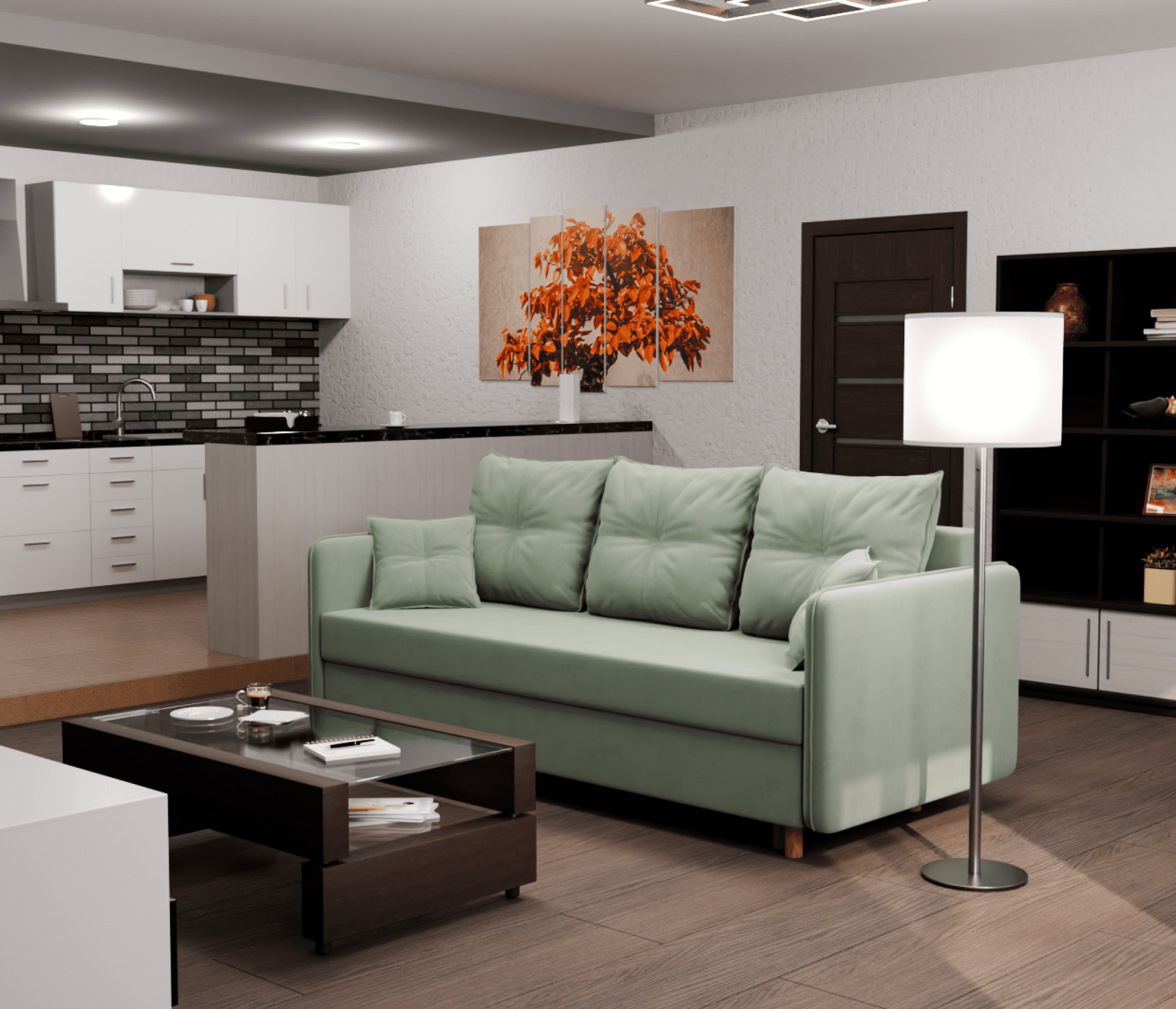 - Раскладной механизм позволяет быстро и без проблем превратить диван в удобную кровать.