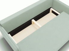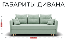 Диван-кровать оснащен механизмом трансформации "еврокнижка" и ящиком для хранения белья. Обивка выполнена из мягкого и приятного на ощупь велюра. Цвет дивана "фисташковый", что делает его универсальным и гармоничным для многих интерьеров.
