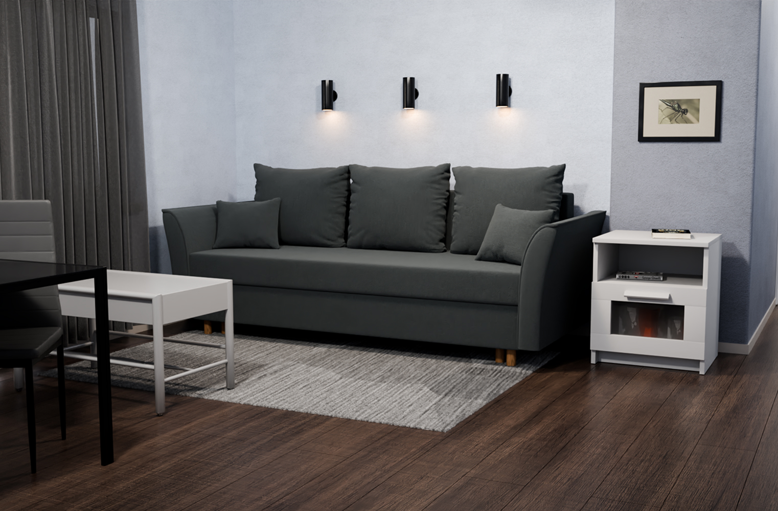 Особенности: с подлокотниками, раскладная конструкция, съемные подушки.