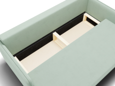 Диван-кровать оснащен механизмом трансформации "еврокнижка" и ящиком для хранения белья. Обивка выполнена из мягкого и приятного на ощупь велюра. Цвет дивана "фисташковый", что делает его универсальным и гармоничным для многих интерьеров.