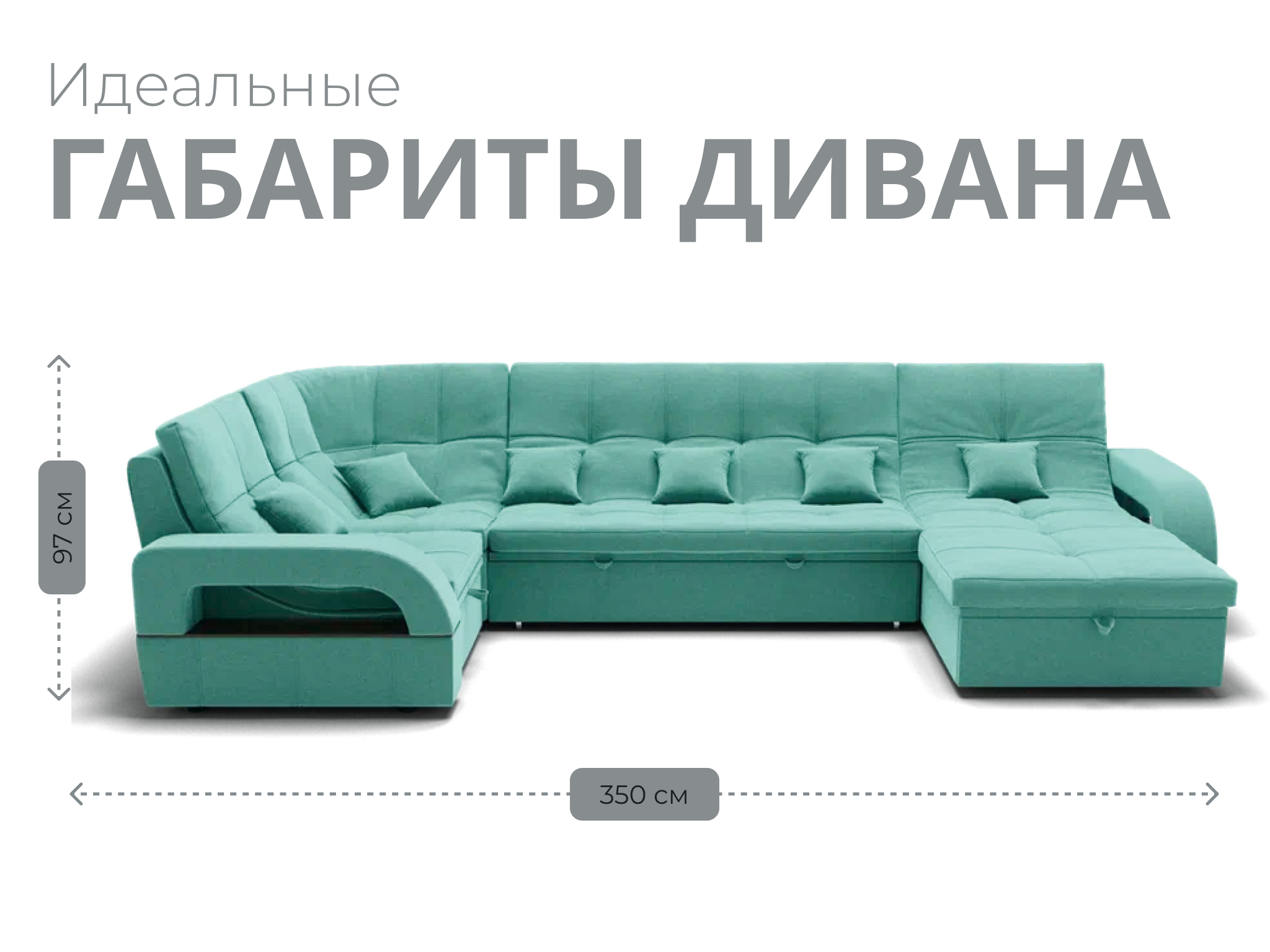 Он имеет высоту 97 см, ширину 350 см и глубину 187 см. Обит велюром - Veluta lux. Диван обладает универсальным расположением угла, что позволяет его использовать в любом помещении.