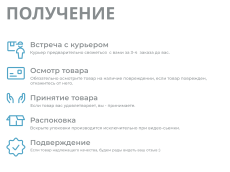 Доставка осуществляется до подъезда, поднятие на этаж и сборка не включены в стоимость доставки. Подъём товара организовывает самостоятельно покупатель. Срок доставки устанавливается после полной готовности дивана к отгрузке.