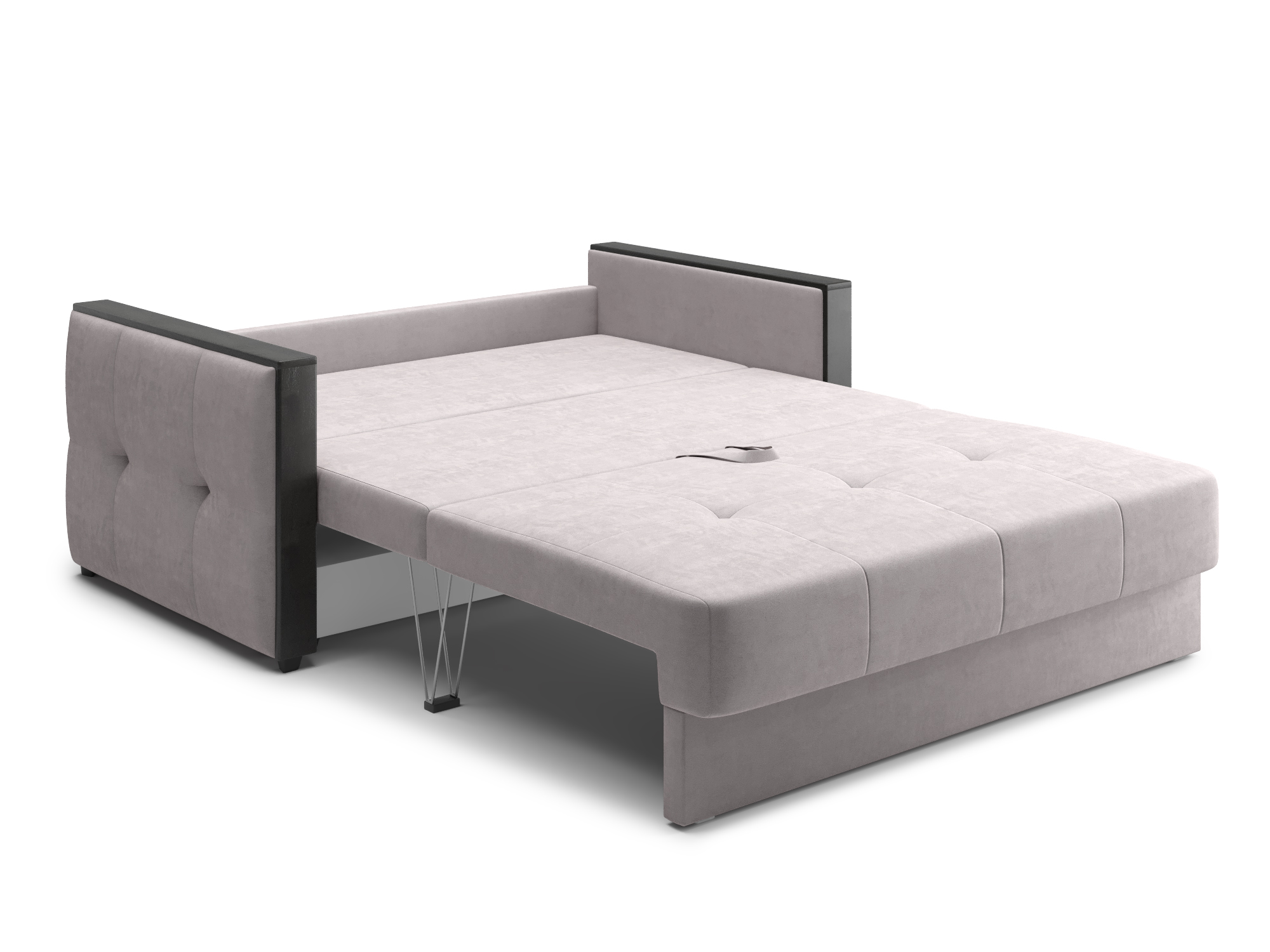 - Механизм раскладки трёхсекционная еврокнижка. В отличие от еврокнижки, спальное место у такого дивана образуется поперёк, а не вдоль сидячего места и состоит из трёх частей. Благодаря такой конструкции габариты дивана в ширину могут быть значительно меньше, чем у еврокнижки, что актуально при планировании расстановки мебели в зависимости от размеров помещения. Под сиденьем дивана находится короб для хранения вещей и постельных принадлежностей.