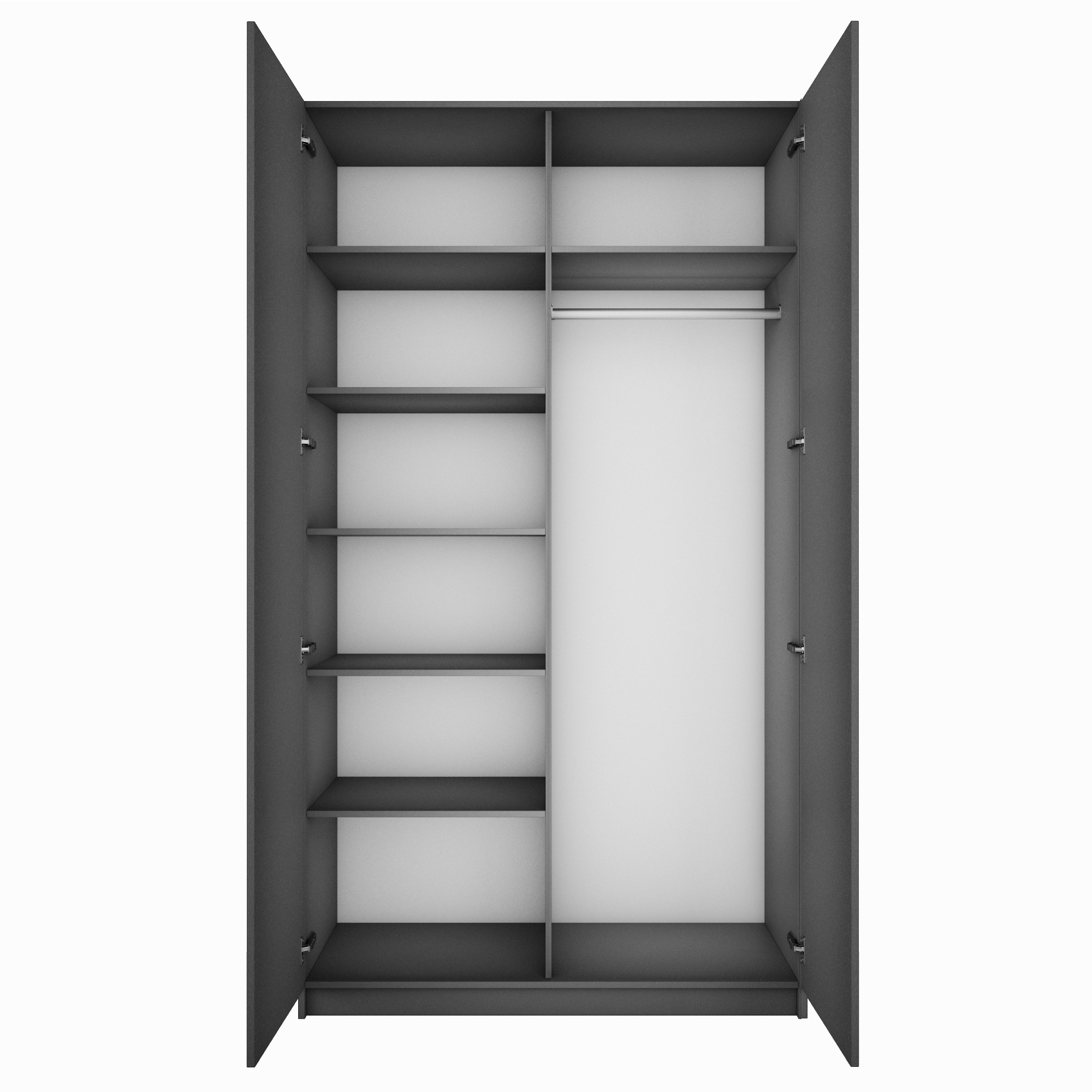 Благодаря надежным полкодержателям - штифтам, полки шкафа могут выдерживать до 15 кг, штанга выдерживает нагрузку до 60 кг. Вы сможете убрать сезонные вещи, постельное белье на верхние полки. Распашной шкаф оснащен долговечной, ударостойкой кромкой ПВХ, которая защищает его торцы от сколов и повреждений, что обеспечит вам комфортное и долгое использование гардероба. Распашная система дверей Titus B-Type обеспечивает надежное прилегание дверцы к корпусу шкафа и высокую износостойкость. Механизм не деформируется при значительных нагрузках и максимально практичен в эксплуатации. Шкаф оснащен удобной минималистичной ручкой, изготовленной из алюминия. В производстве используется безопасное ЛДСП международного класса Е1, что способствует безопасному использованию на протяжении всего срока эксплуатации.