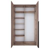 Благодаря надежным полкодержателям - штифтам, полки шкафа могут выдерживать до 15 кг, штанга выдерживает нагрузку до 60 кг. Вы сможете убрать сезонные вещи, постельное белье на верхние полки. Распашной шкаф оснащен долговечной, ударостойкой кромкой ПВХ, которая защищает его торцы от сколов и повреждений, что обеспечит вам комфортное и долгое использование гардероба. Распашная система дверей Titus B-Type обеспечивает надежное прилегание дверцы к корпусу шкафа и высокую износостойкость. Механизм не деформируется при значительных нагрузках и максимально практичен в эксплуатации. Шкаф оснащен удобной минималистичной ручкой, изготовленной из алюминия. В производстве используется безопасное ЛДСП международного класса Е1, что способствует безопасному использованию на протяжении всего срока эксплуатации.