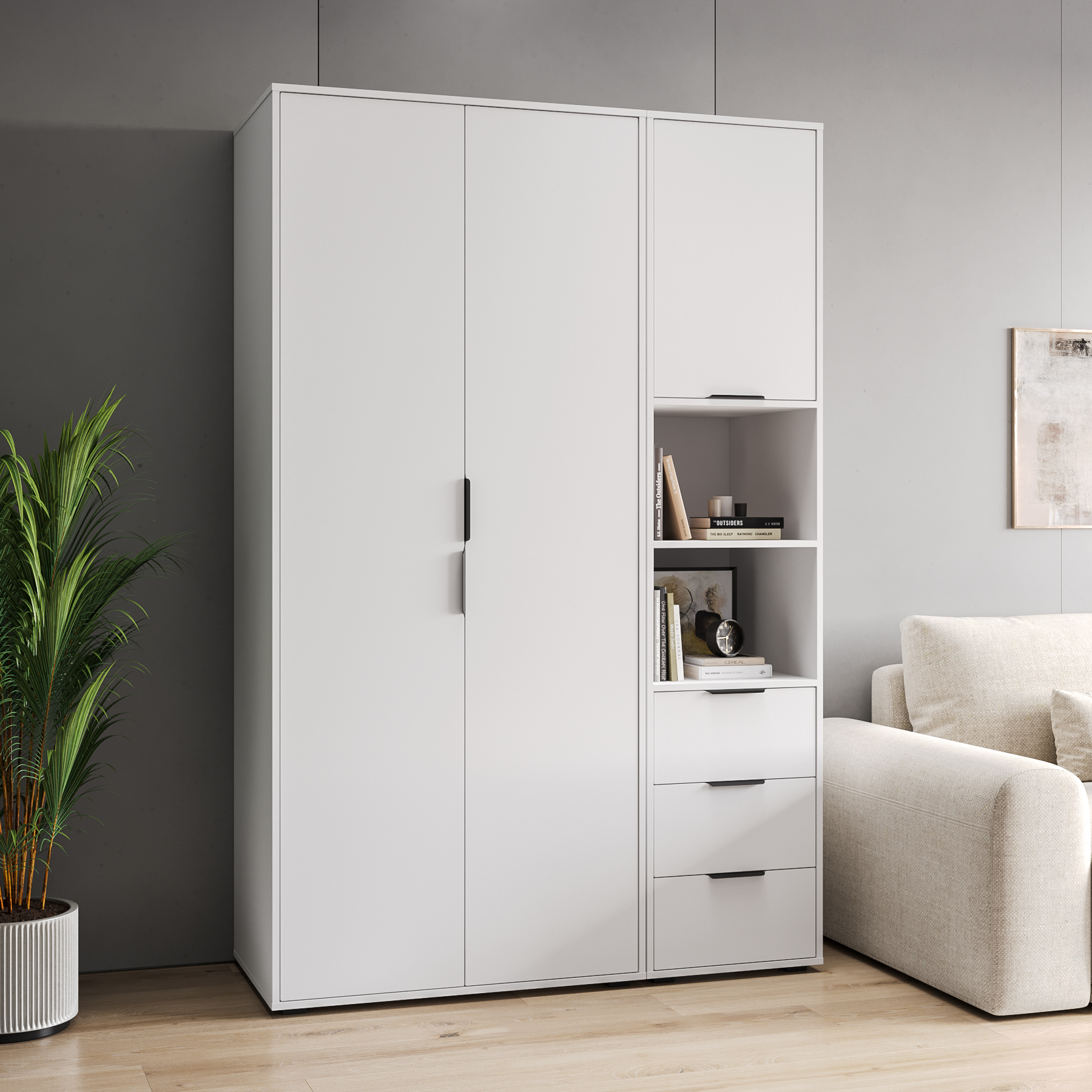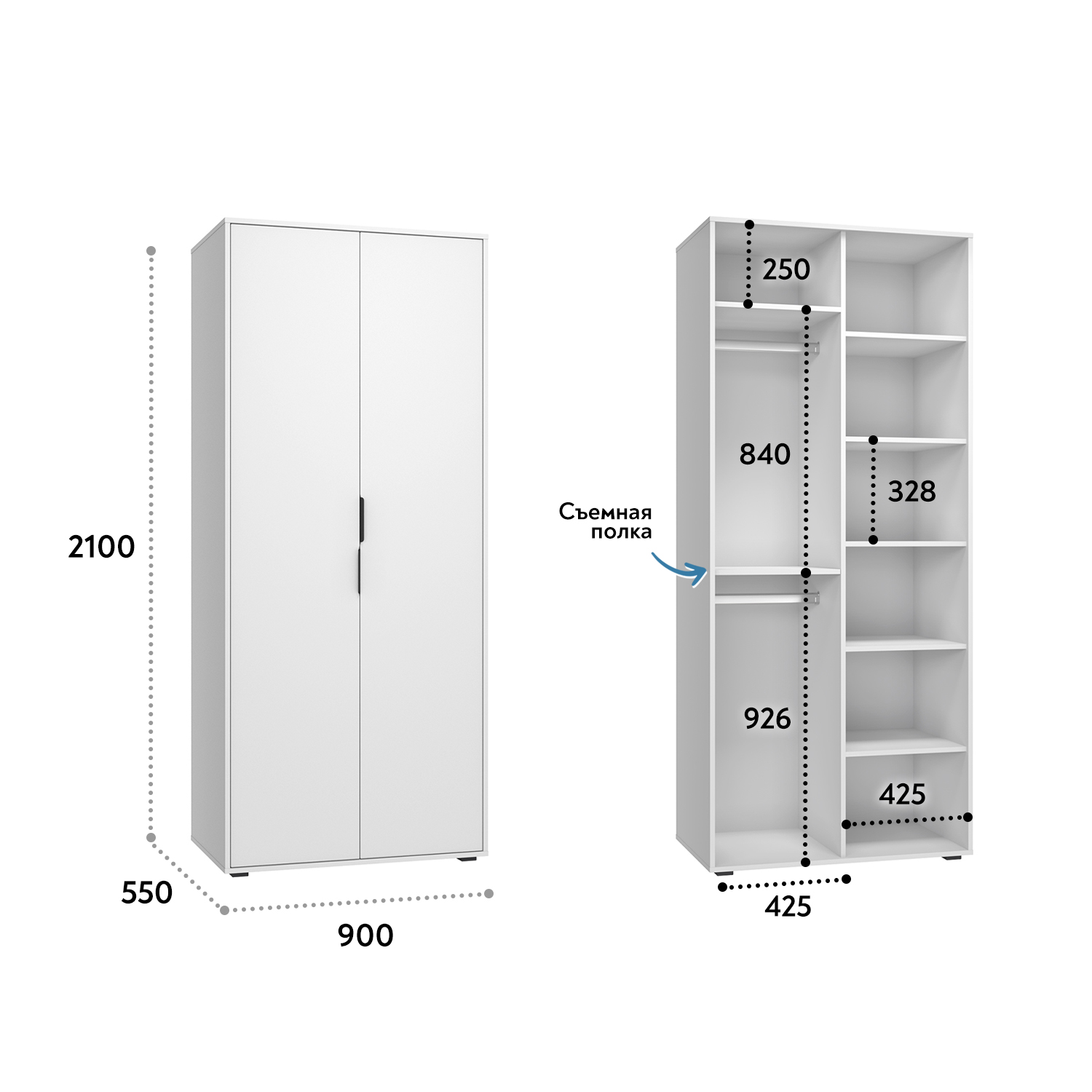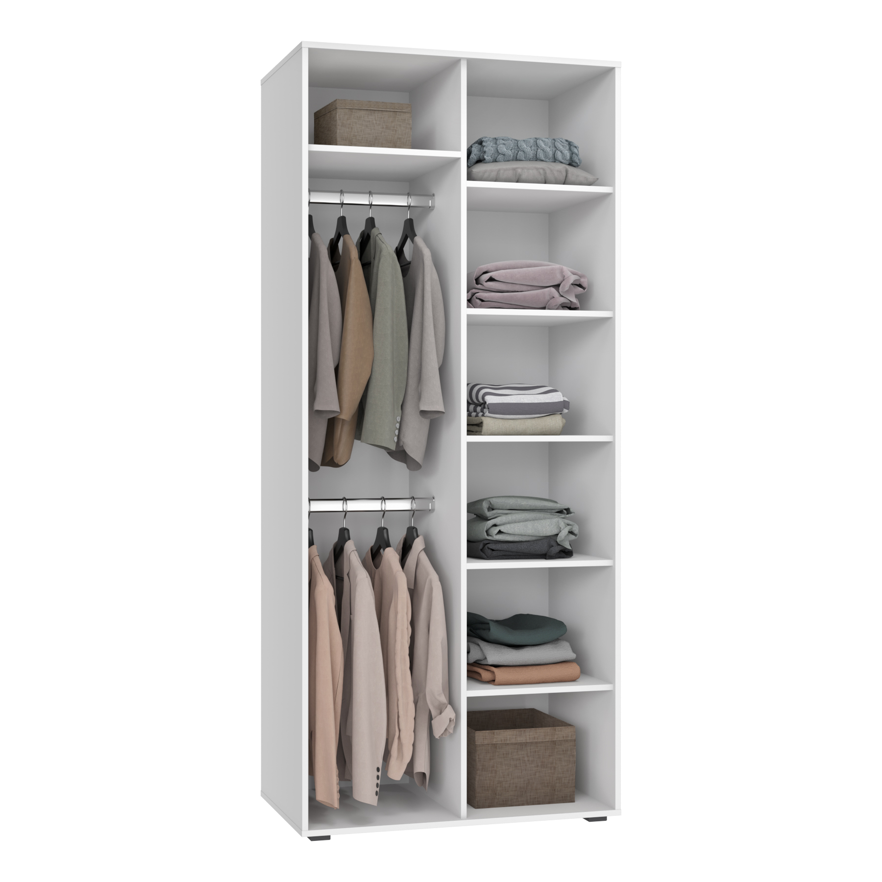 Шкаф для одежды Оптима ОП-01 станет замечательным дополнением для обустройства комфортной и функциональной комнаты. За распашными дверьми находится две штанги для вешалок-плечиков. Полки для хранения сложенной одежды, белья, различных аксессуаров и коробок с обувью. Три варианта сборки шкафа с разным расположением съемной полки и штанг. Высота опоры 20 мм. Фурнитура: петли с доводчиками, ручки металл, опоры регулируемые.