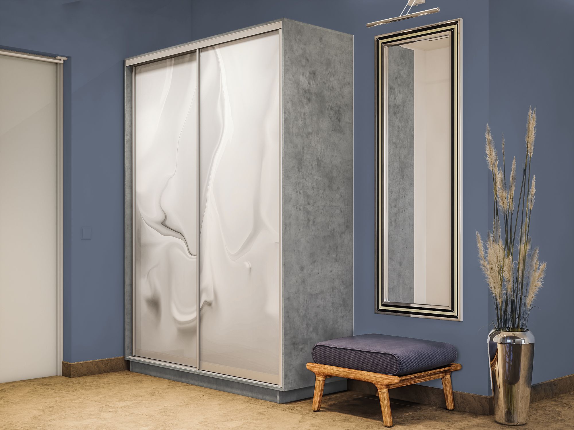 Отзывы о Столплит Шкаф-купе Экспресс 2-х дверный Фотопечать Шелк Стекла 140х45х220 Бетон
