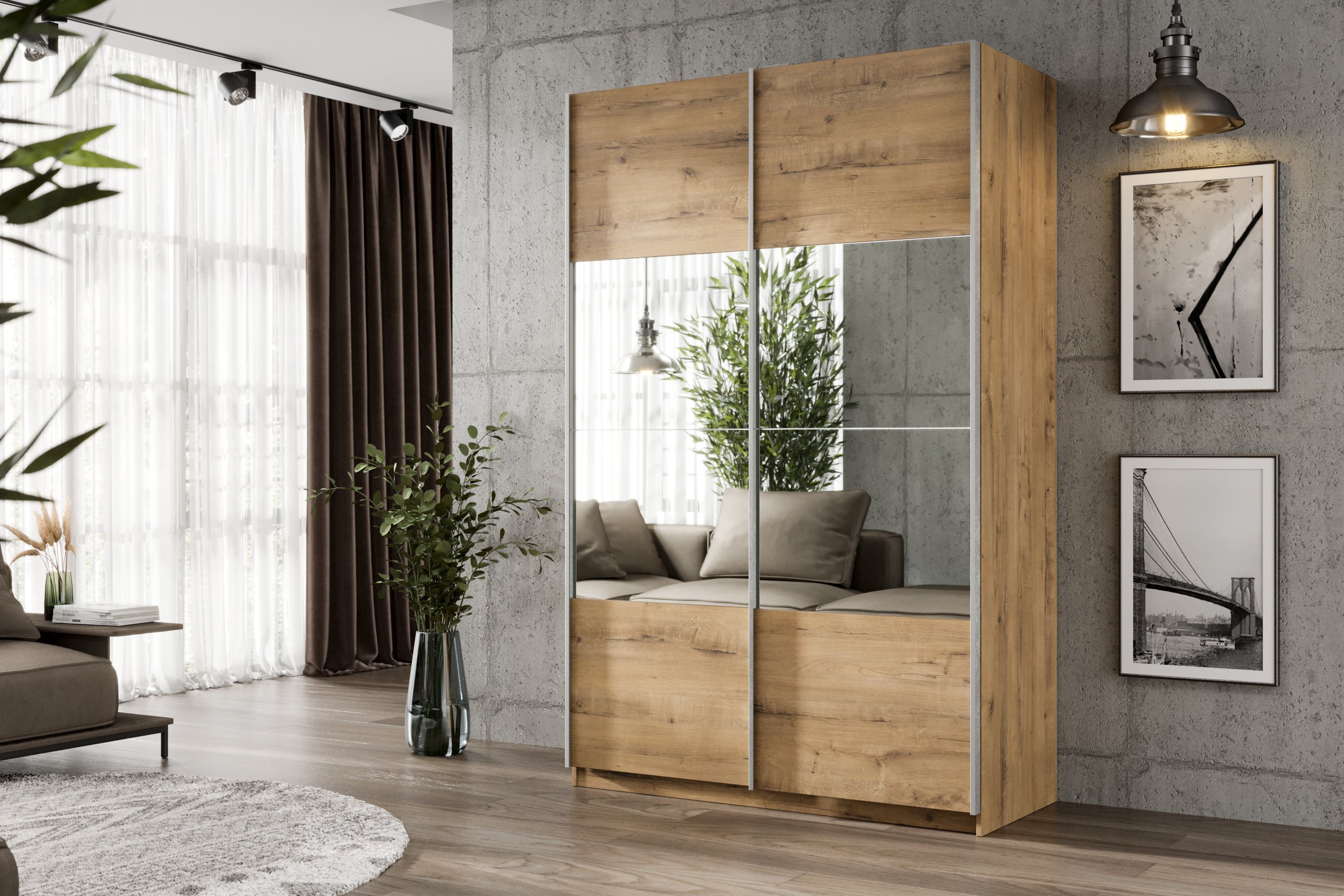 Шкаф-купе Smart 1222 2х дверный (фасады ЛДСП/зеркало) профиль серебро (Бунратти)