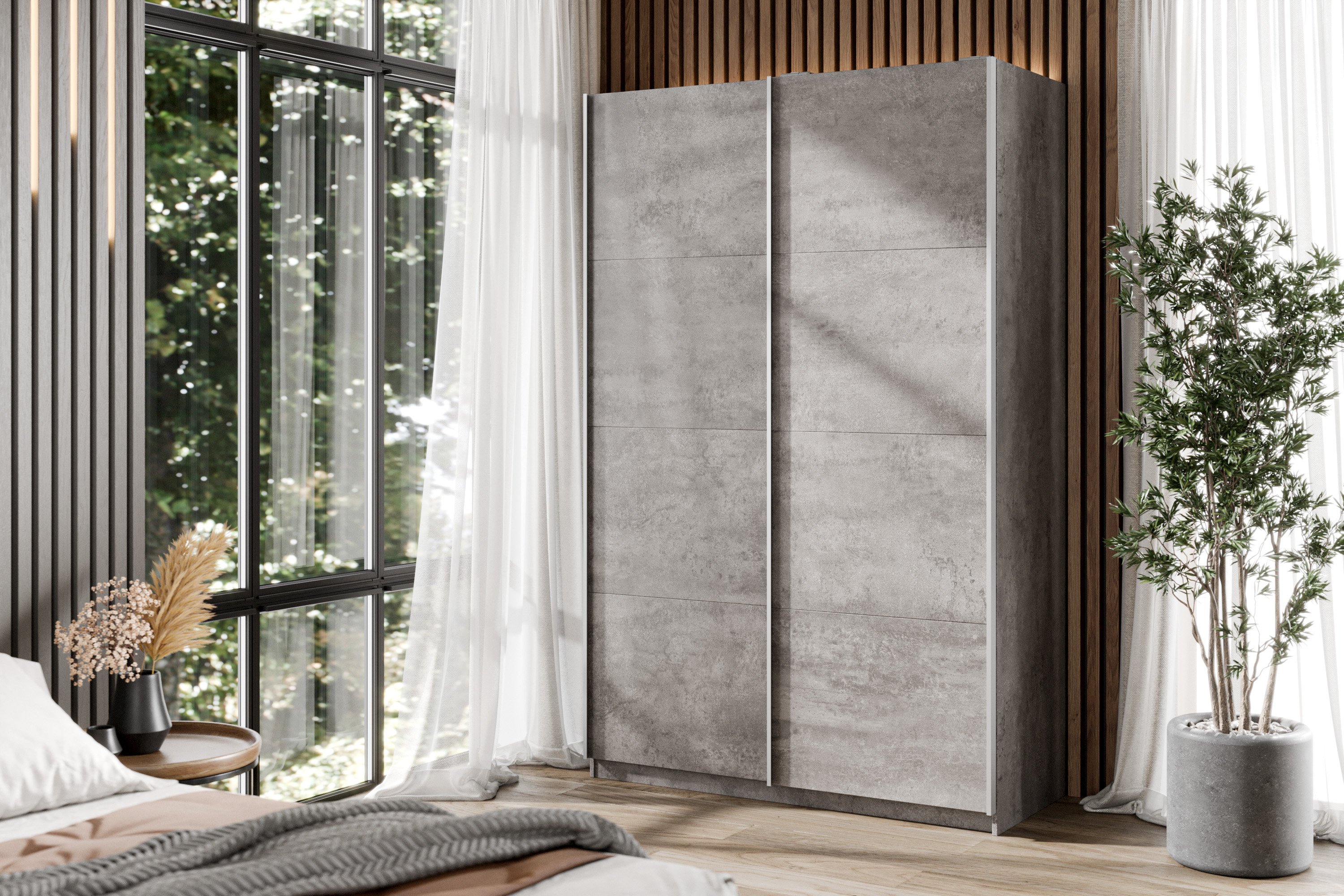 Шкаф-купе Smart 1222 2х дверный (фасады ЛДСП) профиль серебро (Бетон)
