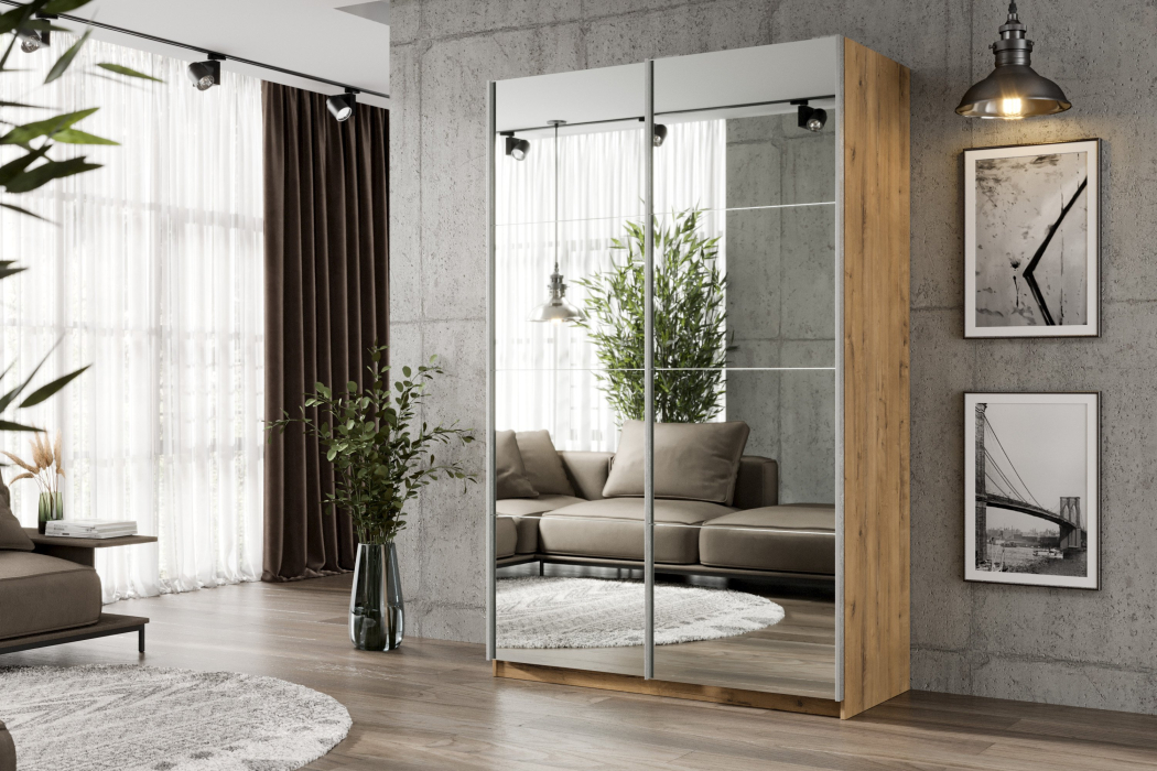 Шкаф-купе Smart 1224 2х дверный (фасады зеркало) профиль серебро (Бунратти)