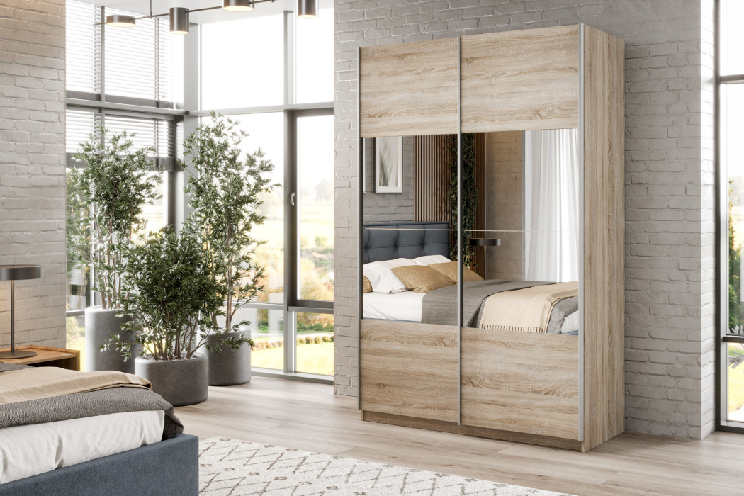 Отзывы о Столплит Шкаф-купе Smart 1422 2х дверный (фасады ЛДСП/зеркало) профиль серебро Дуб сонома