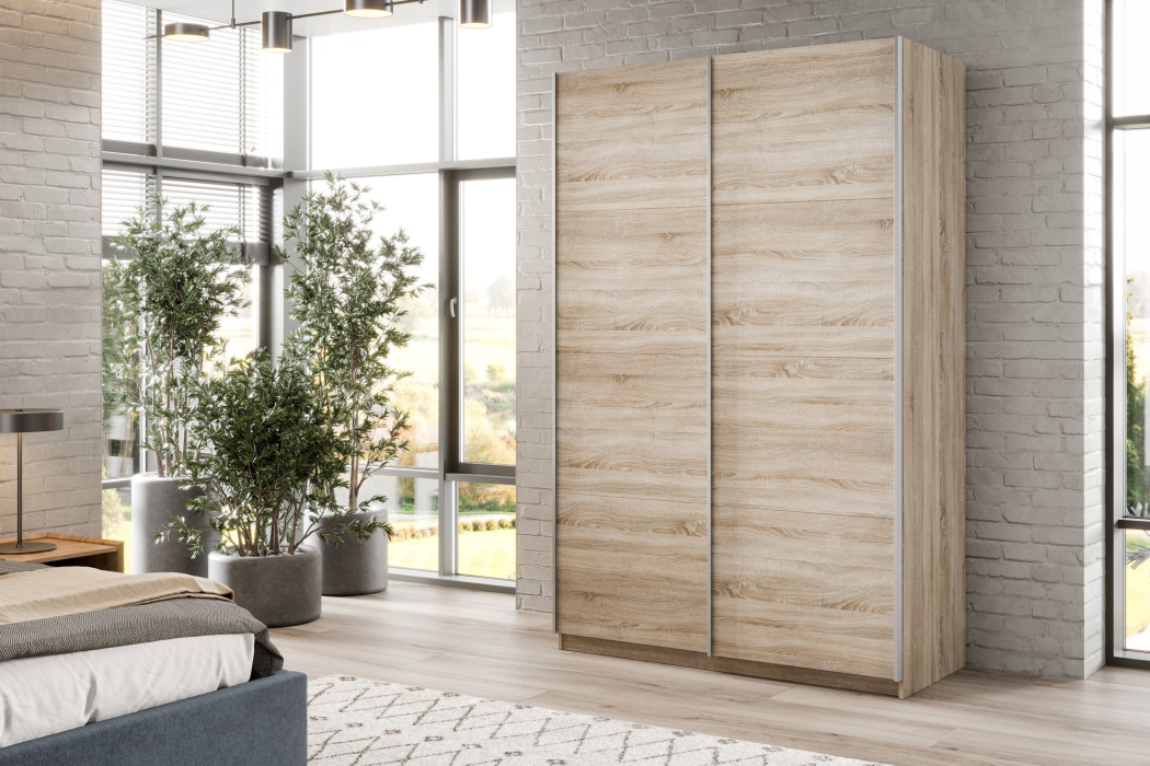 Шкаф-купе Smart 1424 2х дверный (фасады ЛДСП) профиль серебро (Дуб сонома)