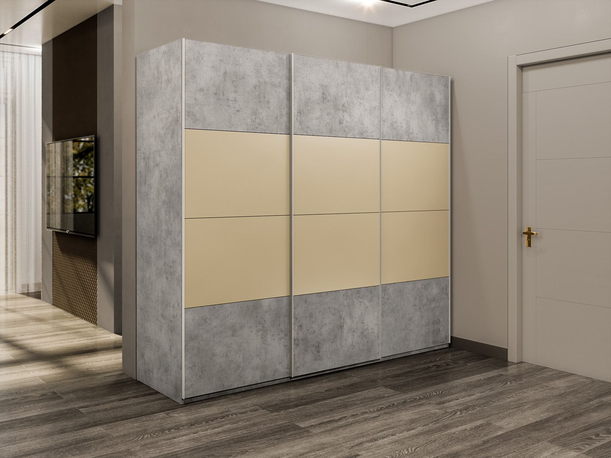 Отзывы о Столплит Шкаф-купе Эста 3-х дверный ДСП/Стекла фисташка/Доводчик 300х66х240 Бетон