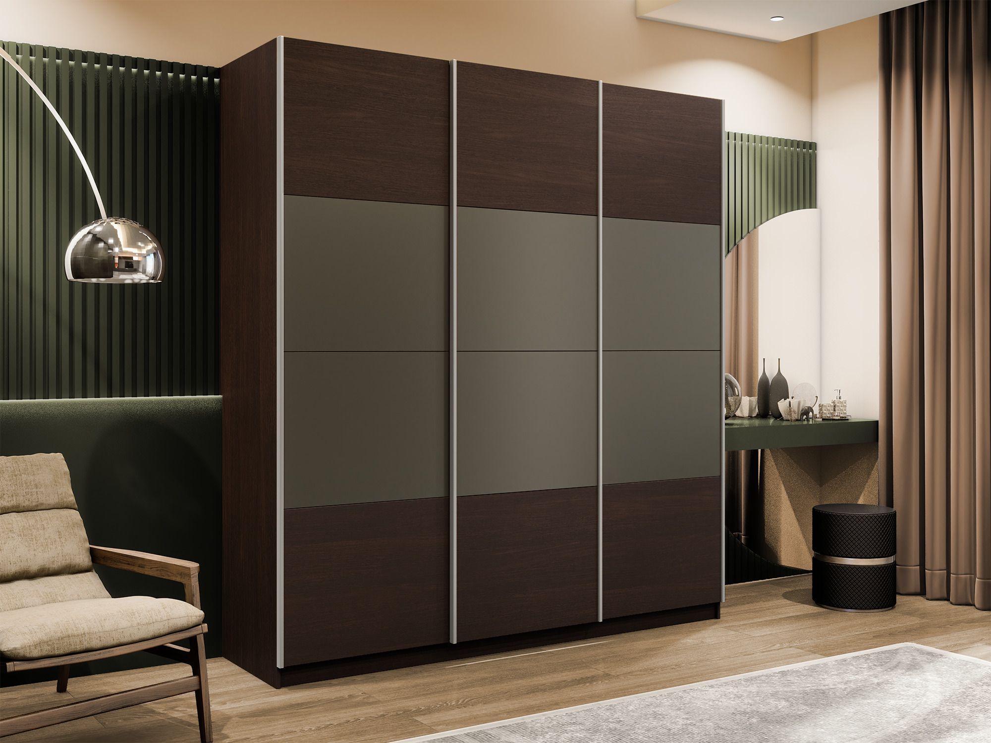 Отзывы о Столплит Шкаф-купе Эста 3-х дверный ДСП/Стекла хаки/Доводчик 240х66х240 Венге мали