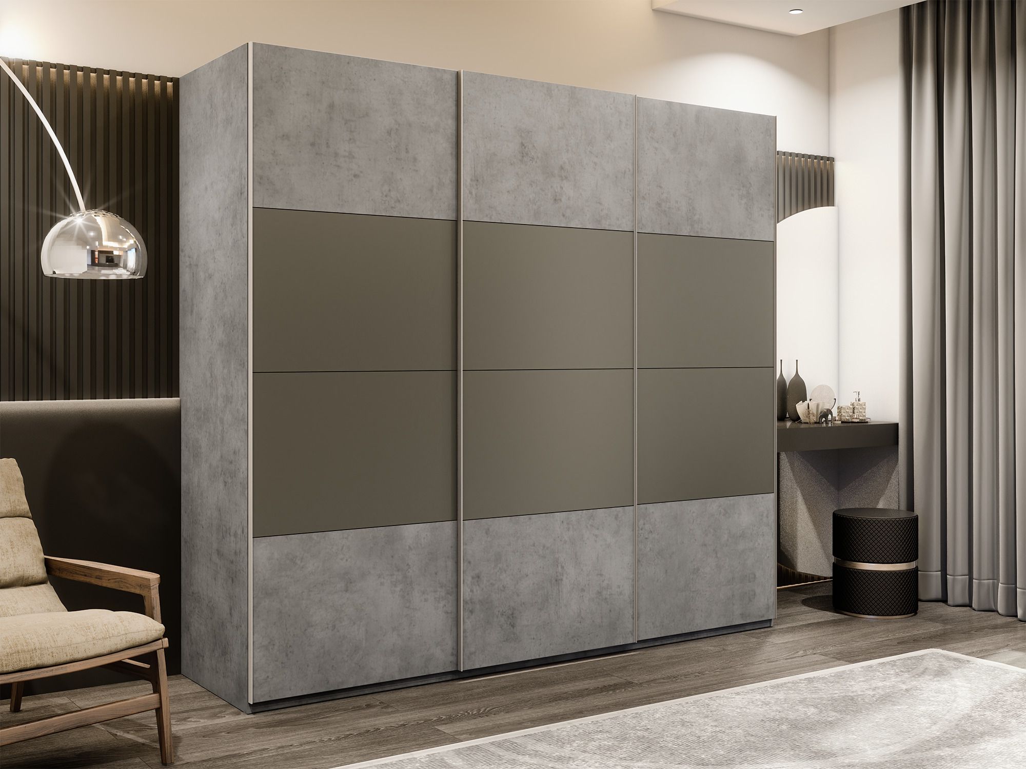 Отзывы о Столплит Шкаф-купе Эста 3-х дверный ДСП/Стекла хаки/Доводчик 300х66х240 Бетон