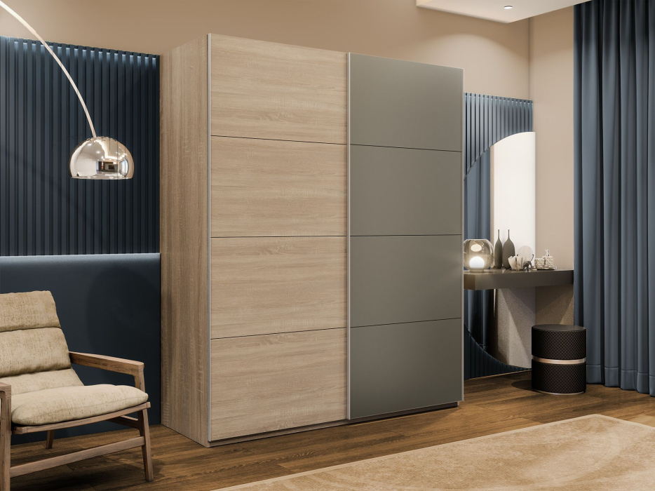 Отзывы о Столплит Шкаф-купе Эста 2-х дверный ДСП/Стекла хаки/Доводчик 160х66х240 Дуб Бардолино