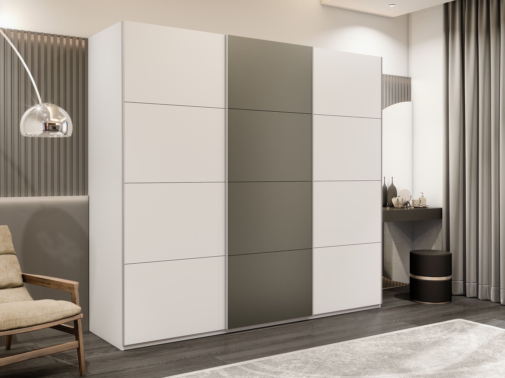 Отзывы о Столплит Шкаф-купе Эста 3-х дверный ДСП/Стекла хаки/Доводчик 300х66х240 Белый
