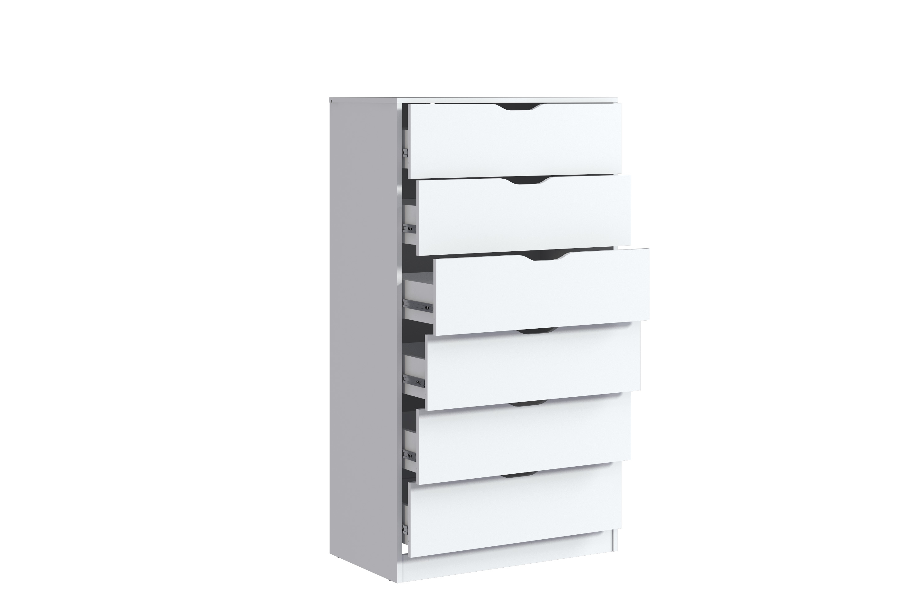 Комод оснащён шестью вместительными ящиками, с шариковыми направляющими. Ящики обеспечивают достаточно места для хранения одежды, белья или других личных вещей. Поверхность комода устойчива к загрязнениям и легко очищается, что позволяет сохранить его безупречный вид с минимальными усилиями.