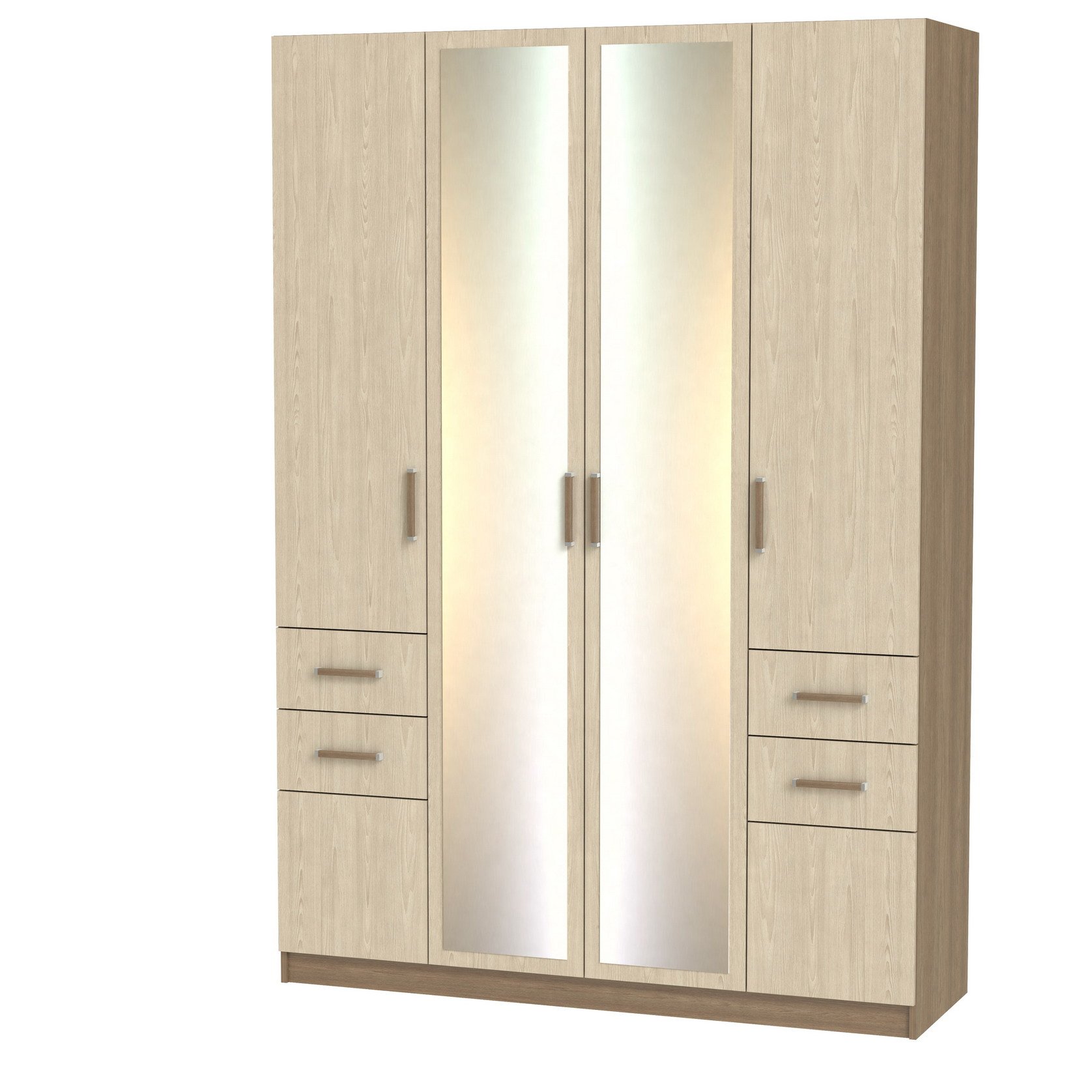 Феникс М-14 Корпус шкафа выполнен из Ламинированной ДСП высшего качества с насыщенным цветом. В данной моделе используются зеркала.Шириною 160 см., красивый четырехстворчатый шкаф. В центре 2 большие двери с зеркалами, за ними расположено большое отделение со штангой. Слева Ниша с небольшой штангой и ещё одна маленькая для сложенных вещей. Справа четыре таких же ниши. Внизу симметрично с каждой стороны располагается по два выдвижных ящика и по одному отделению закрытому на небольшую дверцу. Зеркала входят в стоимость шкафа.