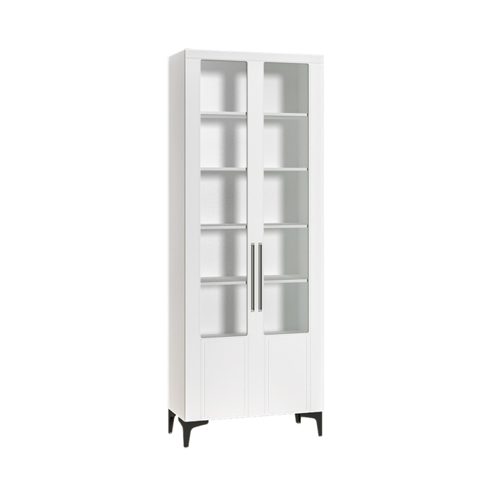 Двухдверный шкаф Валенсия 13.217 представляет из себя сервант со стеклянными вставками в дверях.
