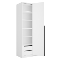 Локер — вместительный шкаф для одежды со складной системой открывания, отличающийся своим удобством в эксплуатации и легкой установкой. Идеально подойдет не только к вашему спальному гарнитуру, прихожей и детской, но и будет гармонично сочетаться со всеми элементами мебели. Не займет много места, но позволит вместить большое количество вещей. Внутреннее наполнение шкафа позволяет вместить не только верхнюю одежду и обувь, но и аксессуары. А удобное разделение секций поможет грамотно разместить все вещи в шкафу. Благодаря надежным полкодержателям - штифтам, полки шкафа могут выдерживать до 15 кг, штанга выдерживает до 60 кг. Вы сможете убрать сезонные вещи, постельное белье на верхние полки. Шкаф оснащен долговечной, ударостойкой кромкой ПВХ, которая защищает его торцы от сколов и повреждений, что обеспечит вам комфортное и долгое использование гардероба. Складная система дверей WingLine L экономит внешнее пространство за счет складывания дверей и обеспечивает их надежную фиксацию в открытом виде. Данный механизм обеспечивает плавный ход и исключает образование слепых зон. Система рассчитана на 40 000 циклов «открывание-закрывание». Для эффективной организации пространства внутри корпуса, двери оснащены минимальным выступом. Шкаф оснащен удобной минималистичной ручкой, изготовленной из алюминия.В производстве используется безопасное ЛДСП международного класса Е1, что способствует безопасному использованию на протяжении всего срока эксплуатации. Поэтому вы можете использовать его в детской комнате, и ваш ребенок будет в безопасности. *Изображения товара могут отличаться по цвету и фактуре от фактического внешнего вида.