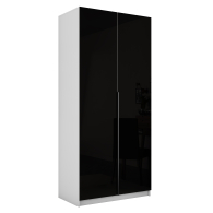 Шкаф распашной Е1 Локер 101x52.5x220 см, с черным стеклом , полками и модулем (Белый снег)