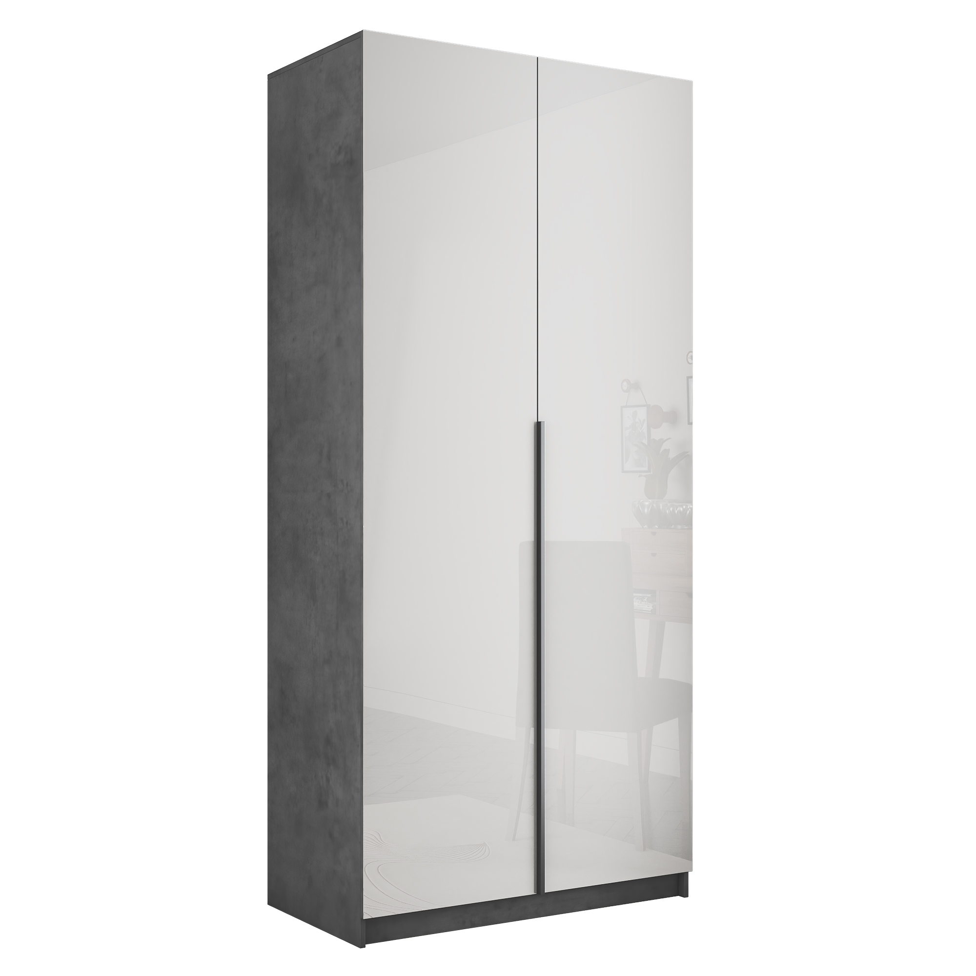 Шкаф распашной Е1 Локер 101x52.5x220 см, с белым стеклом и модулем (бетон) Код I0000426796
