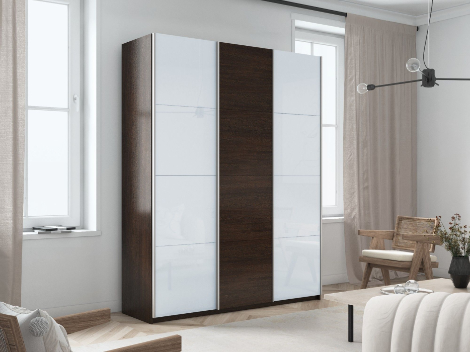 Отзывы о Столплит Шкаф-купе Прайм 3-х дверный Стекла белые/ДСП/Доводчики 180х57х230 Венге