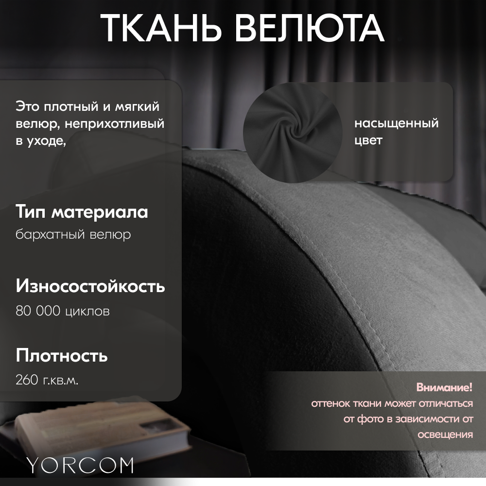 Его лаконичный дизайн легко впишется в любой стиль – от современного минимализма до классического уюта. Обивка выполнена из качественных тканей, которые обеспечивают долговечность и простоту ухода.