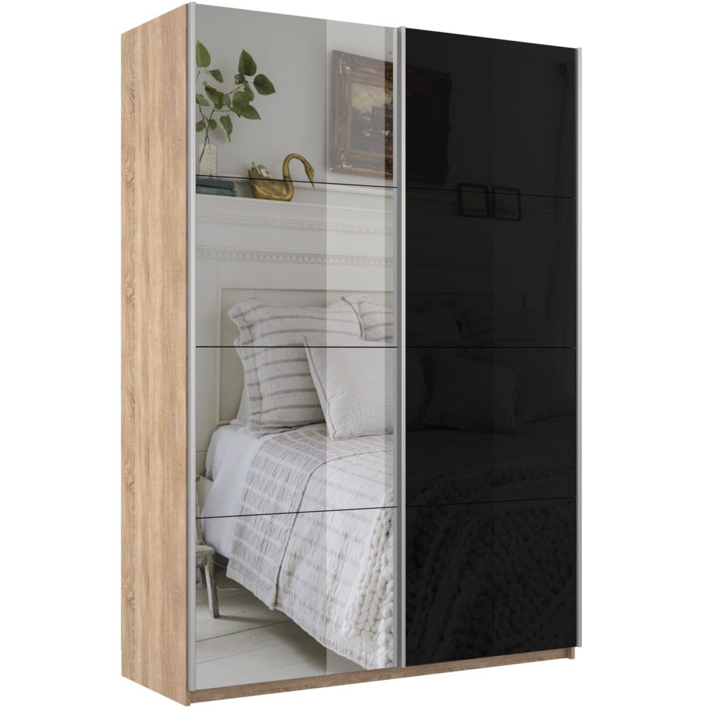 Отзывы о Столплит Шкаф-купе Прайм 2х дверный Зеркало/Стекло черное 160х57х230 Дуб Сонома