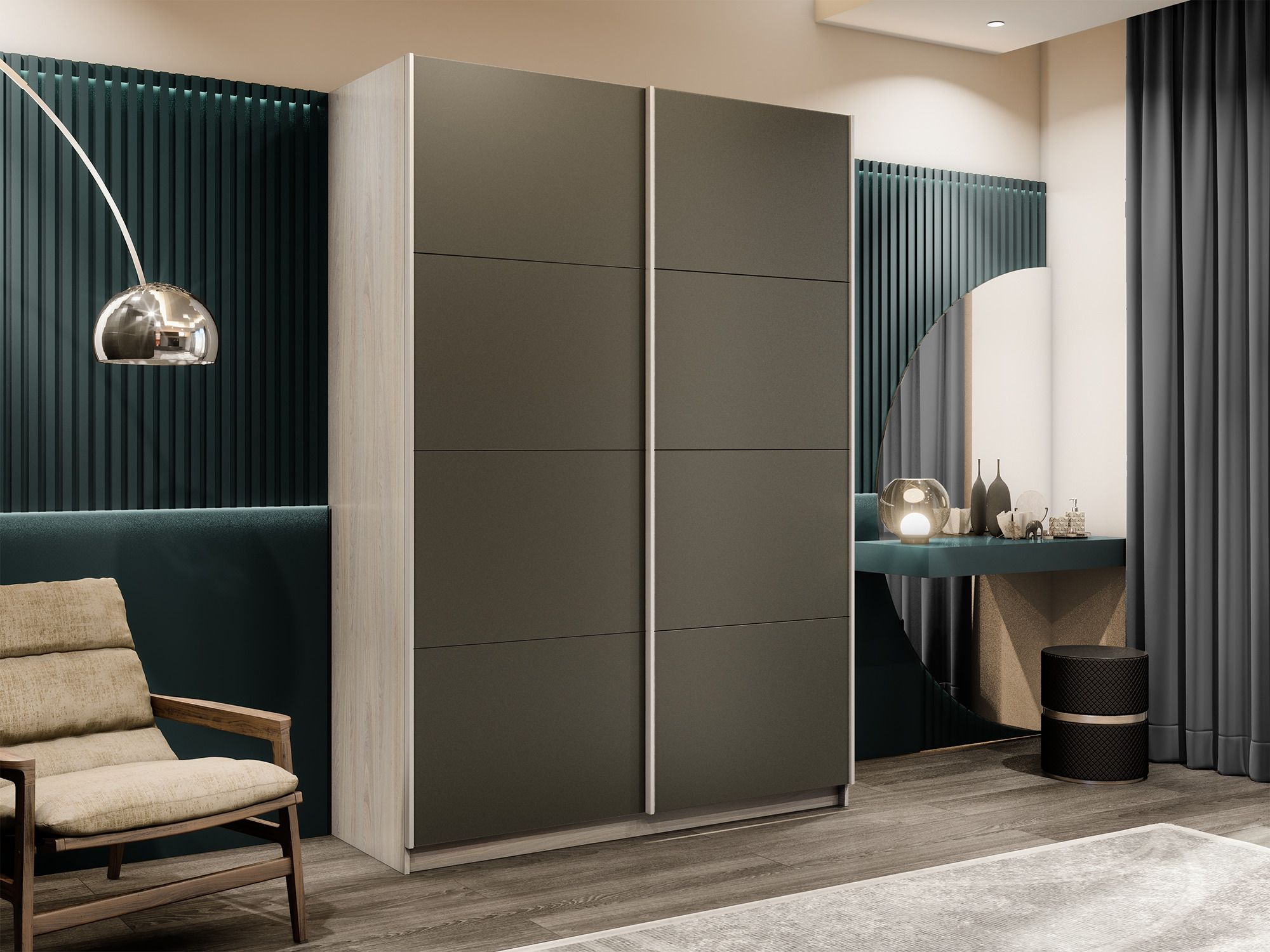 Отзывы о Столплит Шкаф-купе Прайм 2-х дверный Стекла хаки/Доводчики 140х57х230 Ясень Анкор светлый