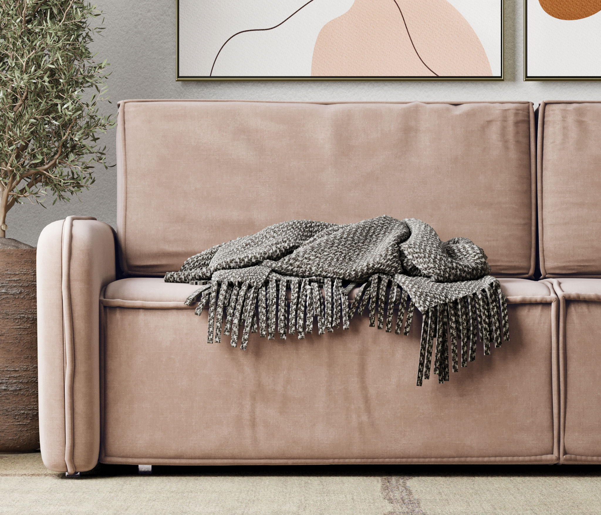 • Качественная обивка: Диван обит мягким велюром, который приятен на ощупь и долго сохраняет свой внешний вид.