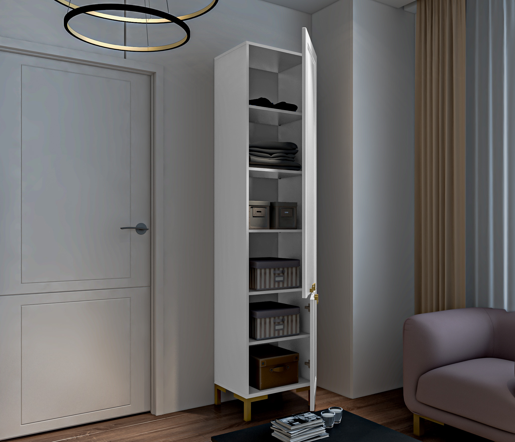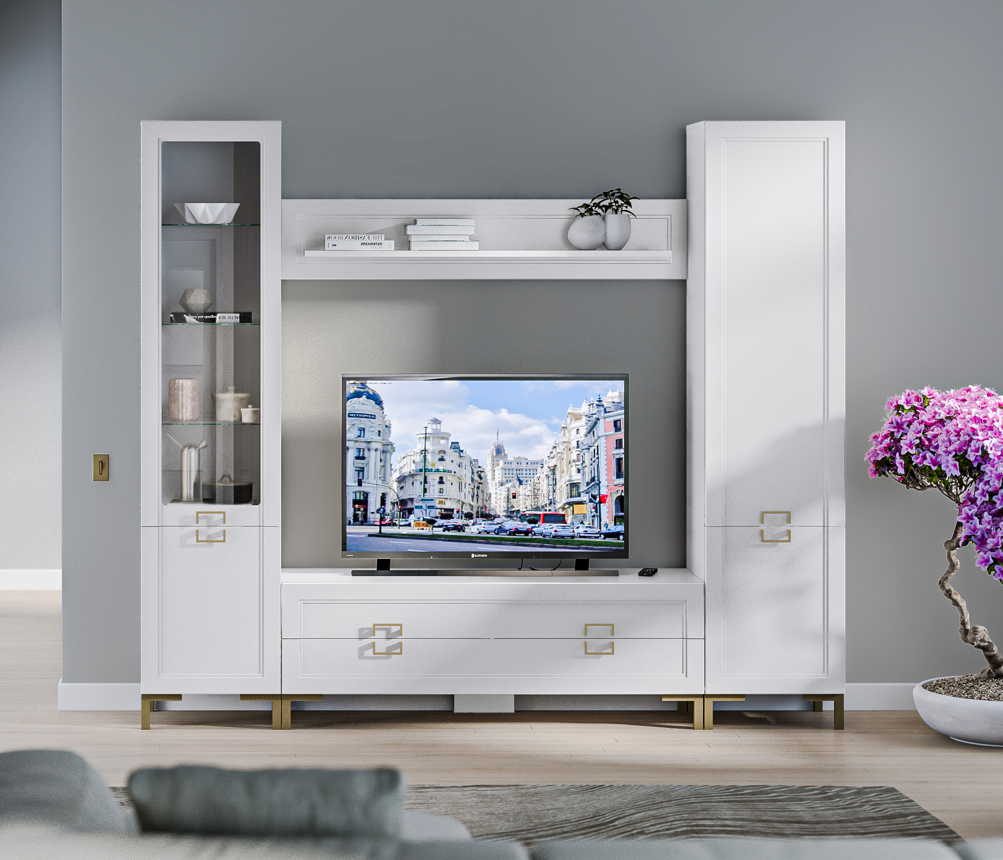 Ассоль СБ-3429 Шкаф-витрина Белый/МДФ БелыйАссоль СБ-3430 Шкаф-пенал Белый/МДФ Белый