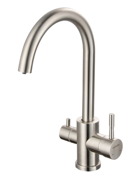 Смеситель для кухни с переключением на питьевую воду, с выделенным каналом GRON PLUS изготовлен из нержавеющей стали.