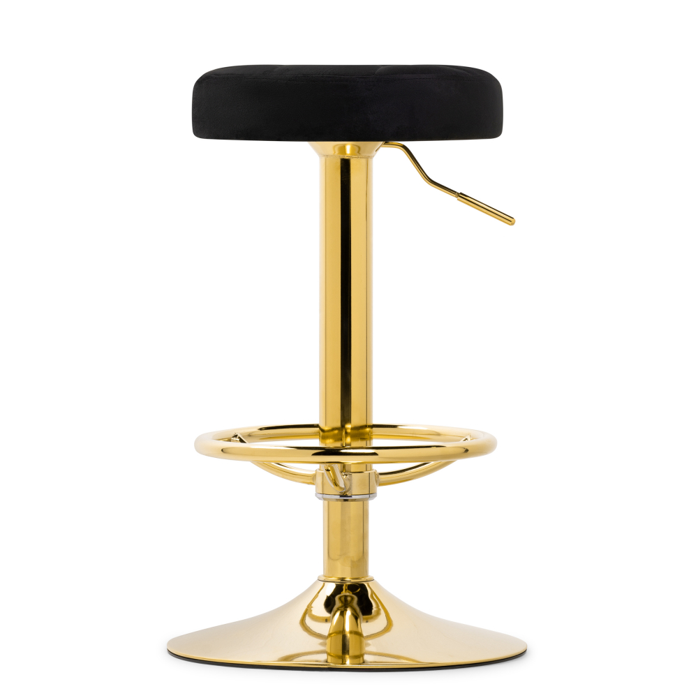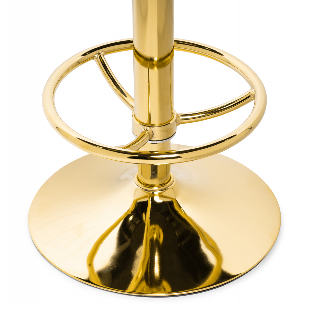 Барный стул Marun - каркас изготовлен их прочного металла, окрашенного в золотистый цвет. Велюровая обивка (100% полиэстер) - при контакте не будет дискомфорта, т.к. материал сохраняет тепло и не будет холодным. Высота подножки: 23 - 44 см. Высота сиденья регулируется от 63 до 84см