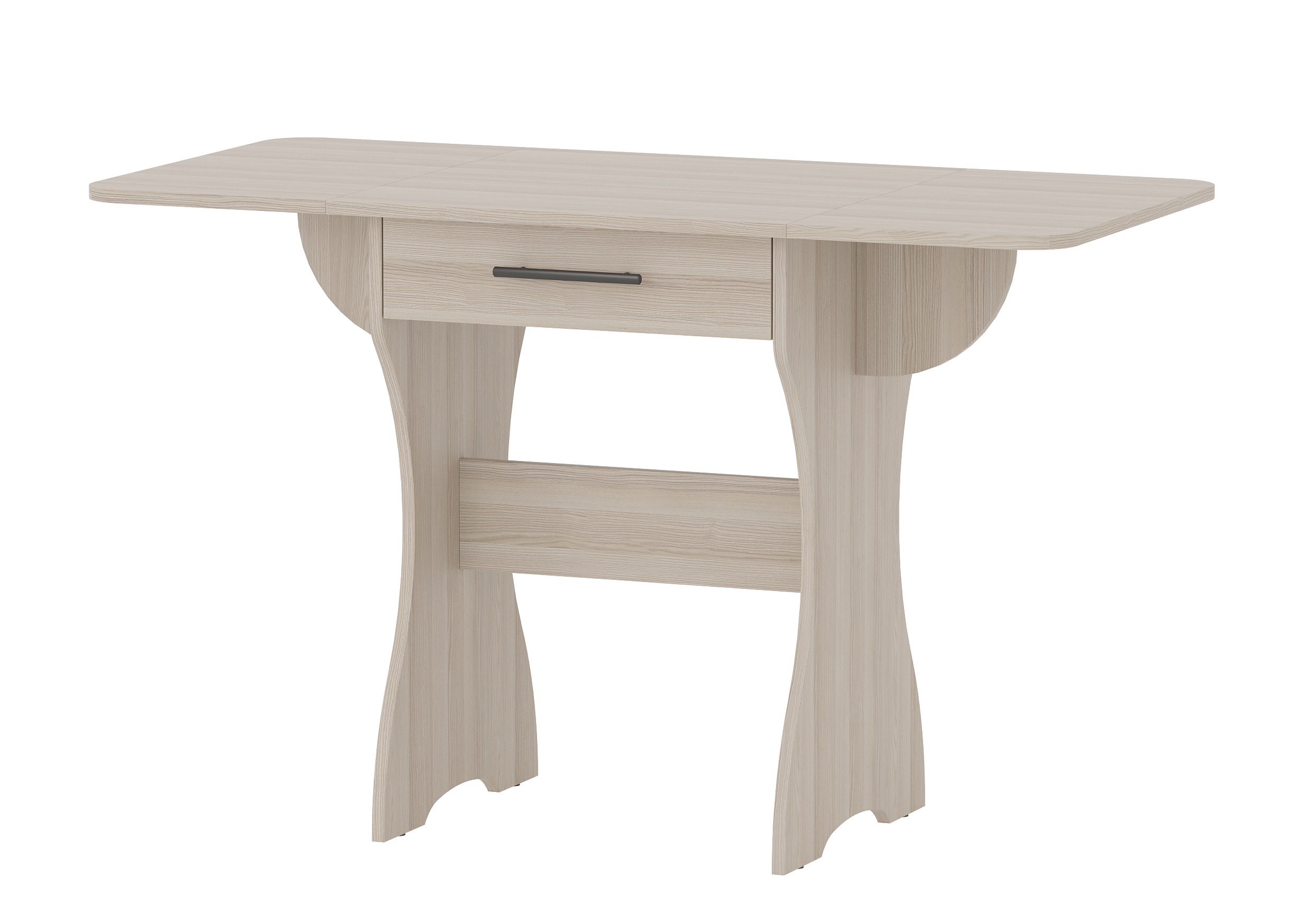 Удобный раскладной кухонный стол с выдвижным ящиком — идеальное решение для компактных и функциональных интерьеров. Надёжная модульная конструкция позволяет быстро трансформировать столешницу: в сложенном виде он занимает всего 600 мм длины, а при необходимости раскладывается до 1200 мм. Под столешницей расположен вместительный выдвижной ящик, в котором можно хранить мелкую кухонную утварь или текстиль.