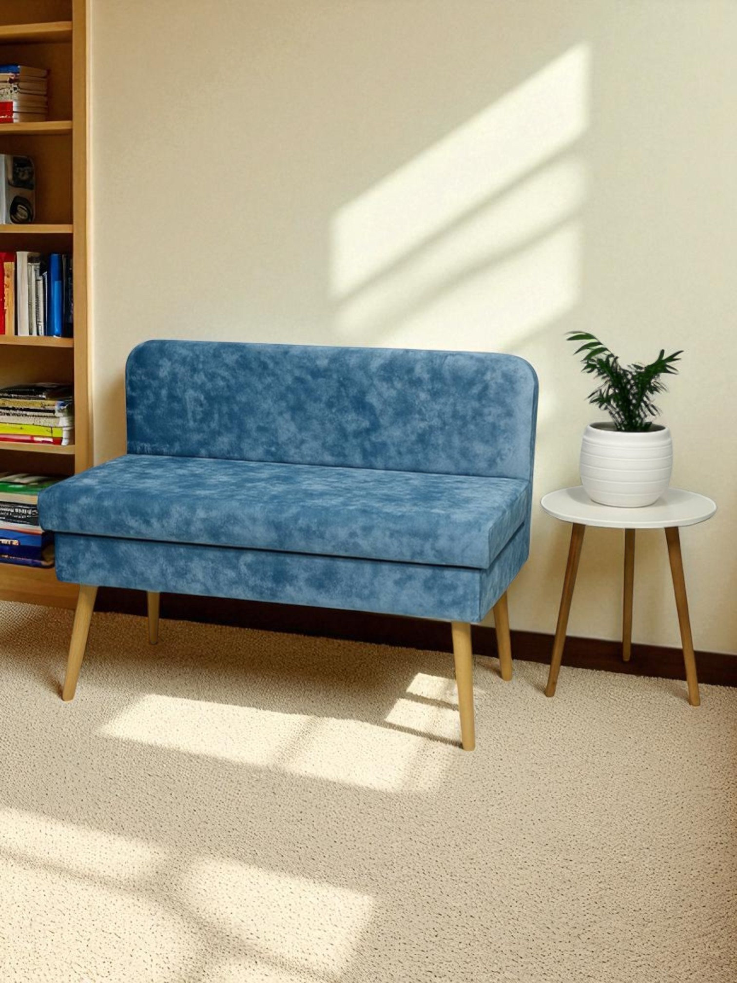 Диван кушетка с ящиком Эда, плюш (Голубой) Код I0000444530