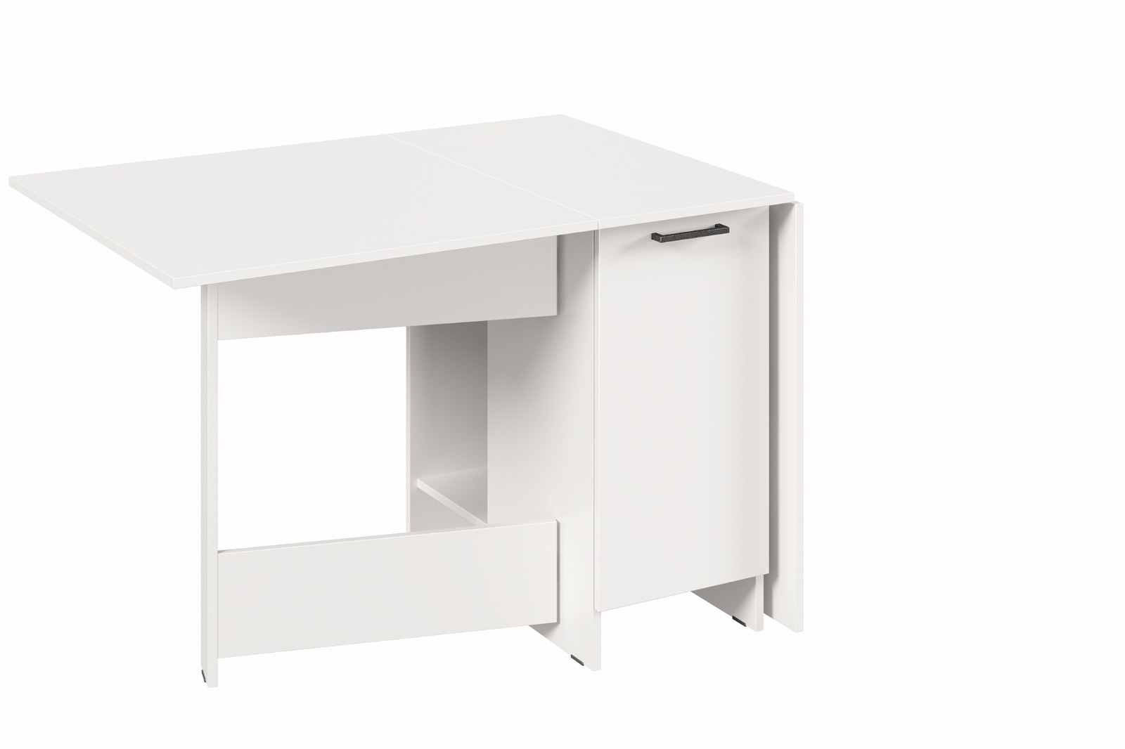 Раскладной стол книжка Атлант 2 с распашным фасадом станет эффектным и практичным элементом современного интерьера. Механизм трансформации поможет при необходимости легко организовать дополнительные посадочные места. Есть место под системный блок ПК.