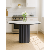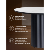 Стол "Барел" – элегантное решение для современного интерьера Круглая столешница создаёт гармоничную и уютную атмосферу, идеально подходит для компактных пространств. Отсутствие острых углов делает стол безопасным для семей с детьми, а плавные линии добавляют интерьеру мягкости и стиля. Ключевые особенности: Материал столешницы – керамика с подложкой МДФ Практичность: Устойчив к влаге, бытовым загрязнениям и случайным царапинам. Простота ухода: Достаточно протереть поверхность влажной тканью. Долговечность: Плёнка ПВХ защищает от выцветания, сохраняя первоначальный вид на годы. Металлический каркас – прочность и стиль Стабильность: Круглая ножка обеспечивает отличную устойчивость даже при нагрузке. Лёгкость и долговечность: Металл не подвержен деформации, коррозии и выдерживает большой вес. Основа столешницы из МДФ - 16мм, сверху керамическое полотно - 6мм. Порошковое окрашивание - дополнительная защита от царапин. Массивные ножки толщиной 3мм. Устойчивая и надёжная конструкция