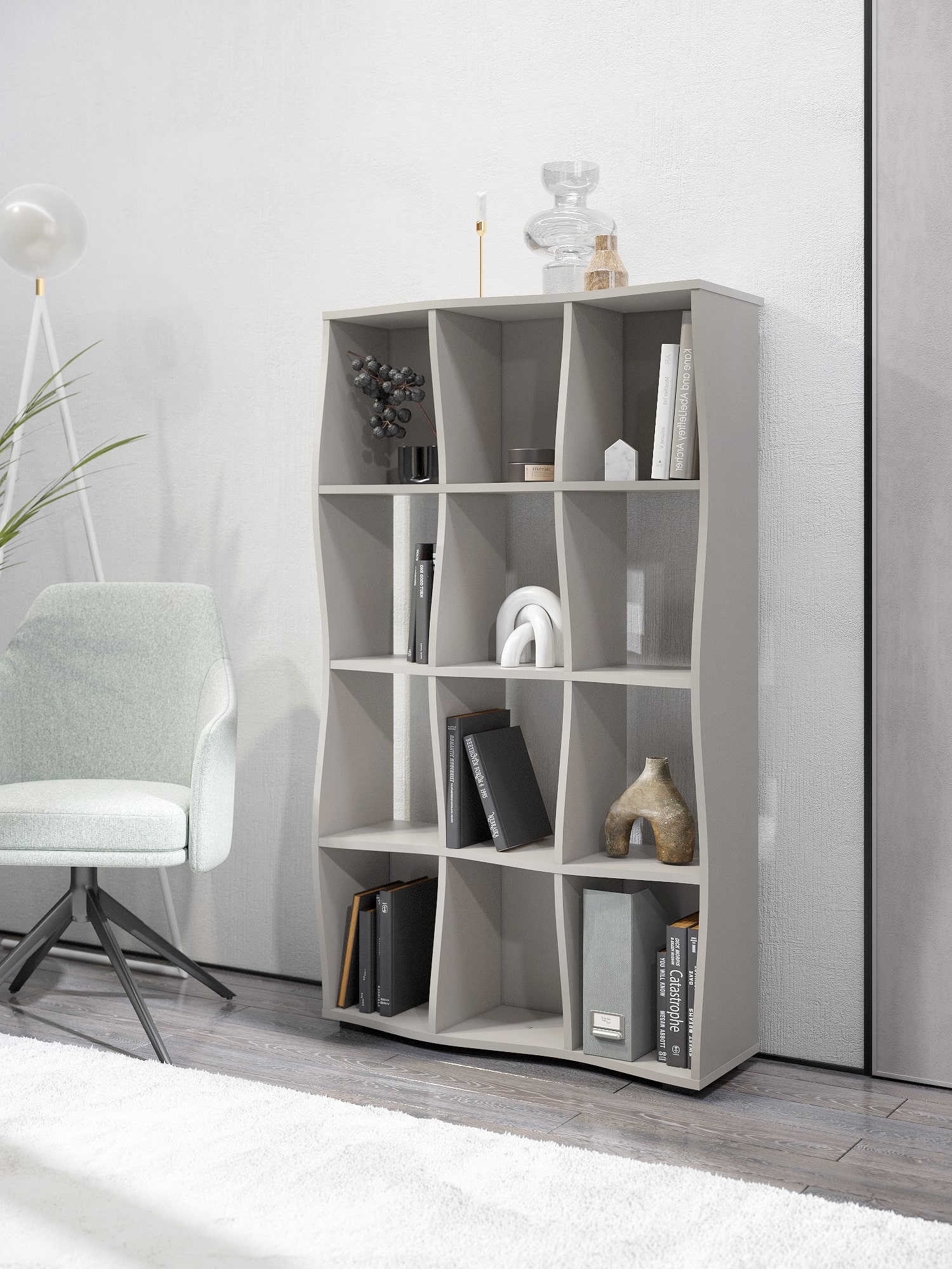 Функциональность: открытые полки для хранения книг, аксессуаров и декора.