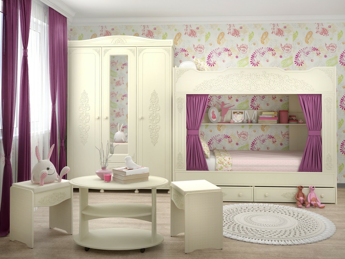 «Ассоль» - мягкий мерцающий глянец и эксклюзивный узор, повторяющийся на фасадах всех модулей идеален для создания нежного уютного интерьера спальни, гостиной, детской, прихожей.