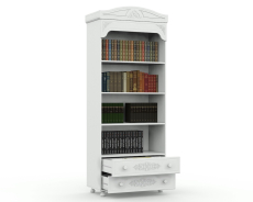 Стеллаж с открытыми полками и двумя выдвижными ящиками. Высота полок 323 мм. Высота верхней полки — 516 мм. Высота боковых стенок каждого ящика 130 мм, ширина ящика 708 мм, глубина 350 мм. Ящики установлены на телескопических направляющих полного выдвижения.