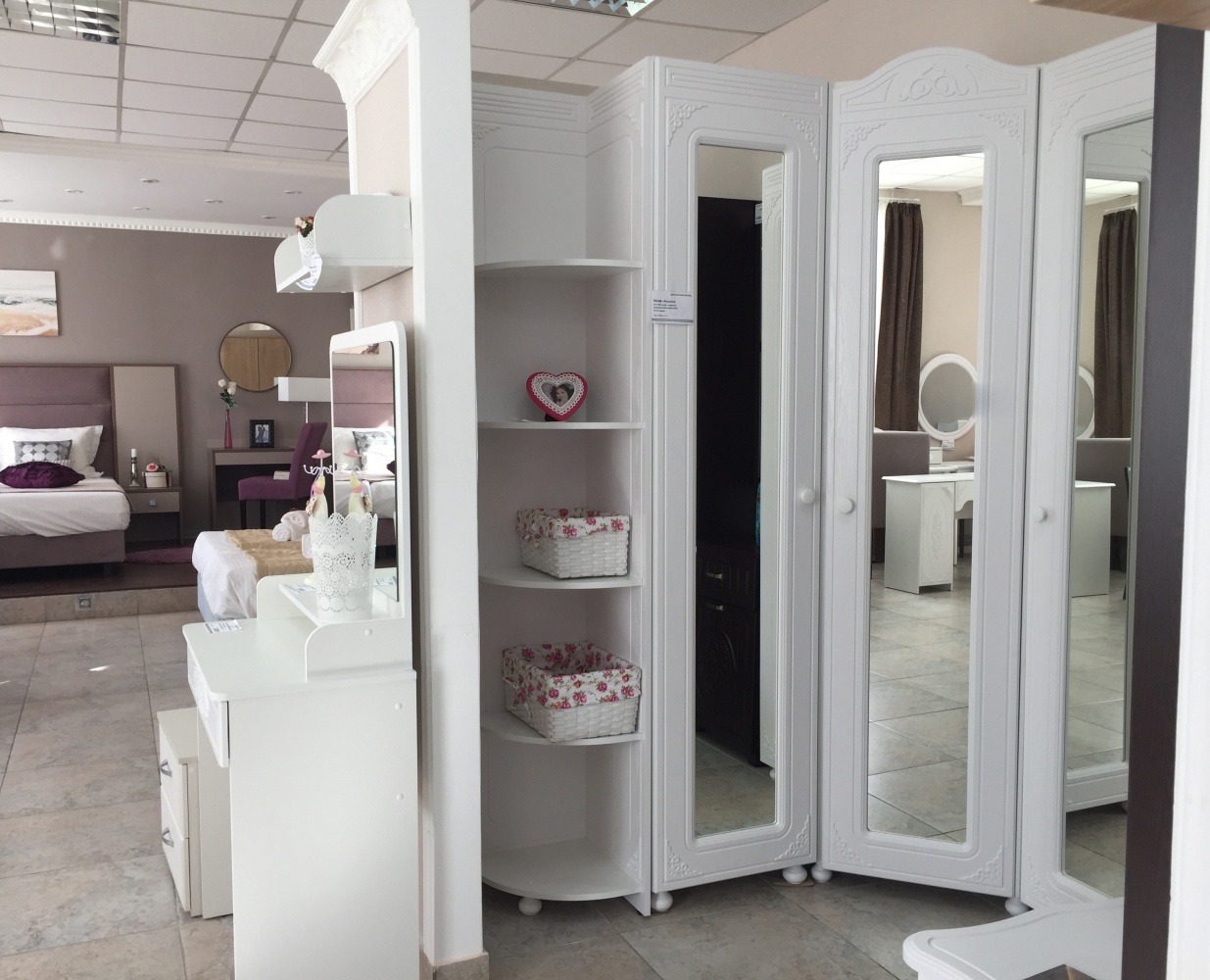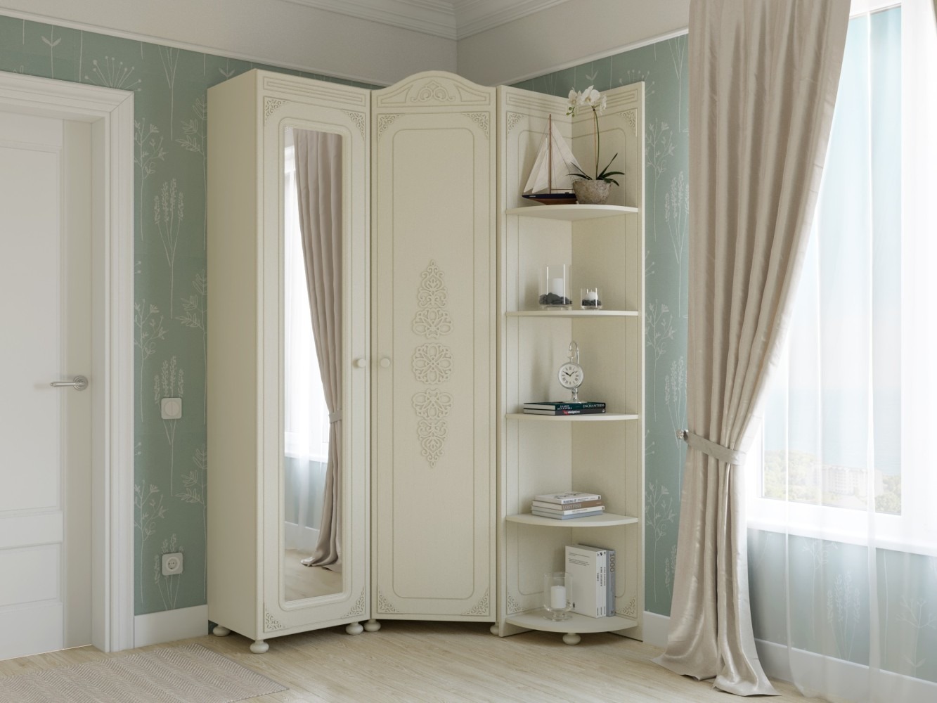 «Ассоль» - мягкий мерцающий глянец и эксклюзивный узор, повторяющийся на фасадах всех модулей идеален для создания нежного уютного интерьера спальни, гостиной, детской, прихожей.