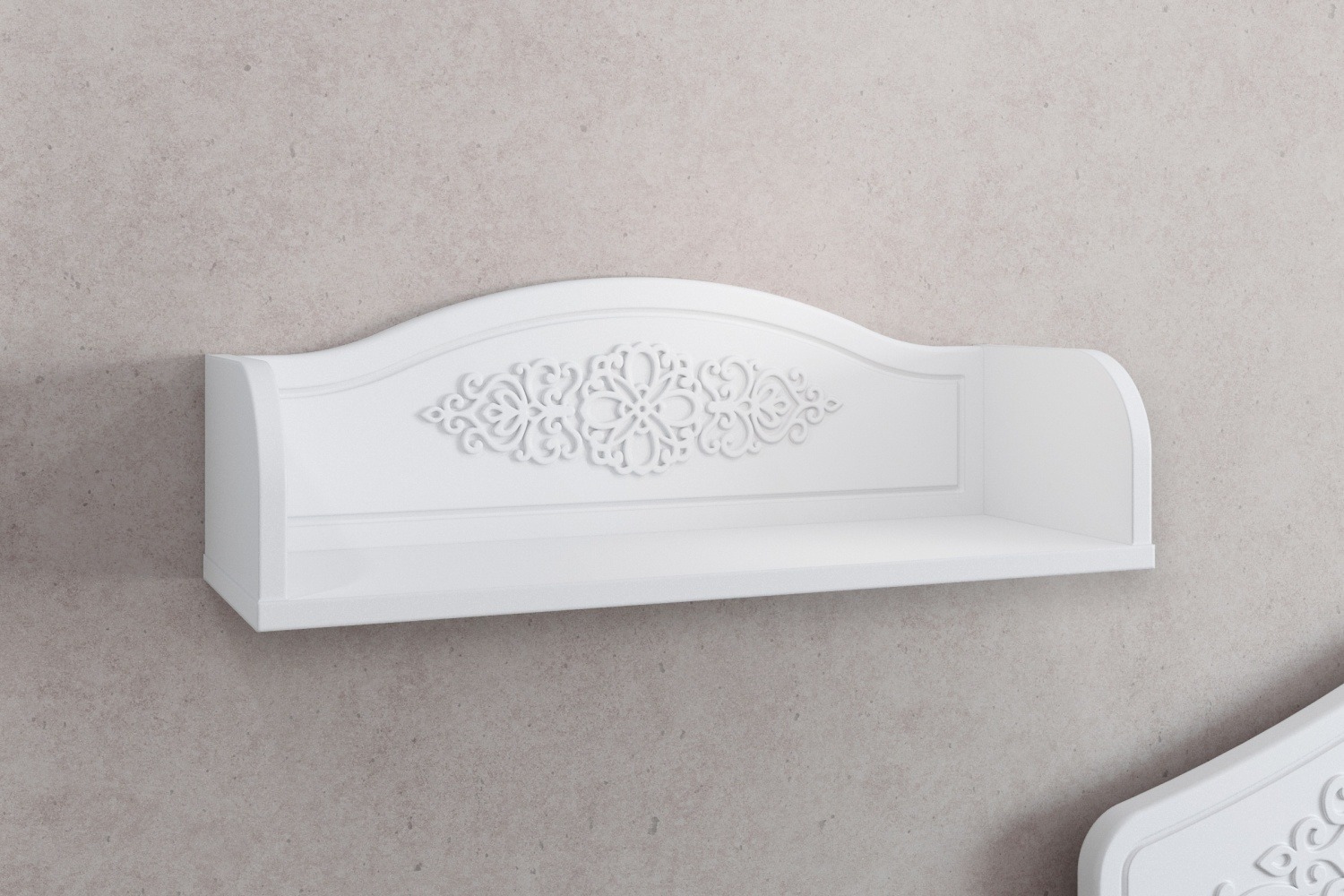 «Ассоль» - мягкий мерцающий глянец и эксклюзивный узор, повторяющийся на фасадах всех модулей идеален для создания нежного уютного интерьера спальни, гостиной, детской, прихожей.Полка идеально вписывающаяся в нежный стиль всей линейки.