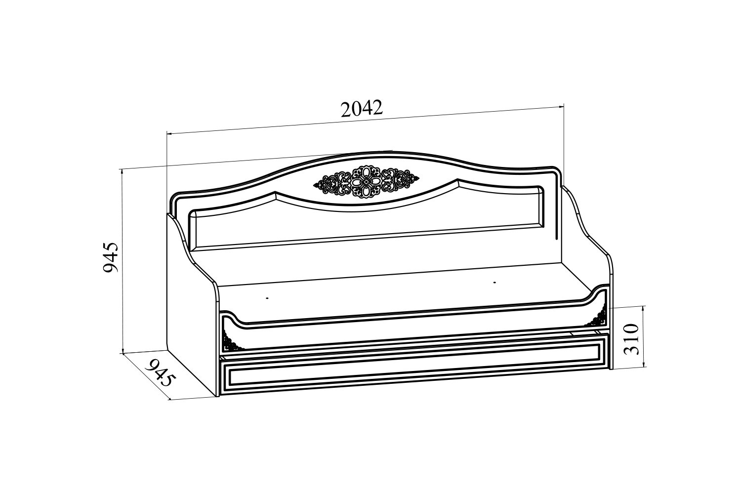 Особенности: мягкая спинка, выдвижной ящик для белья
