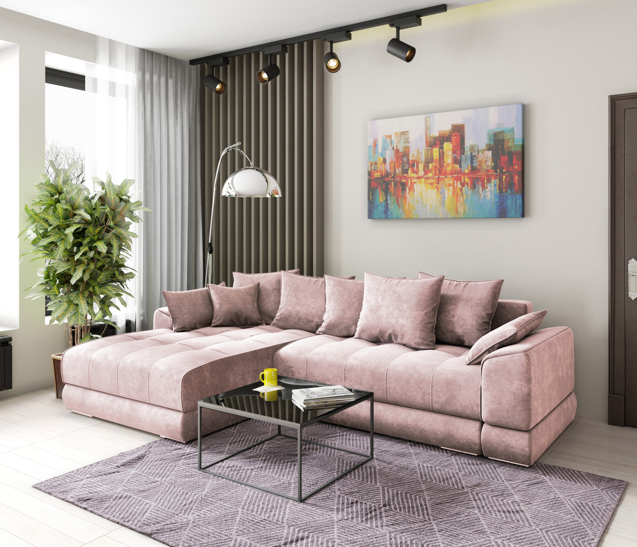 Отзывы о Столплит Диван-кровать угловой еврокнижка Модерн Nordkisa,велюр бежево-розовый