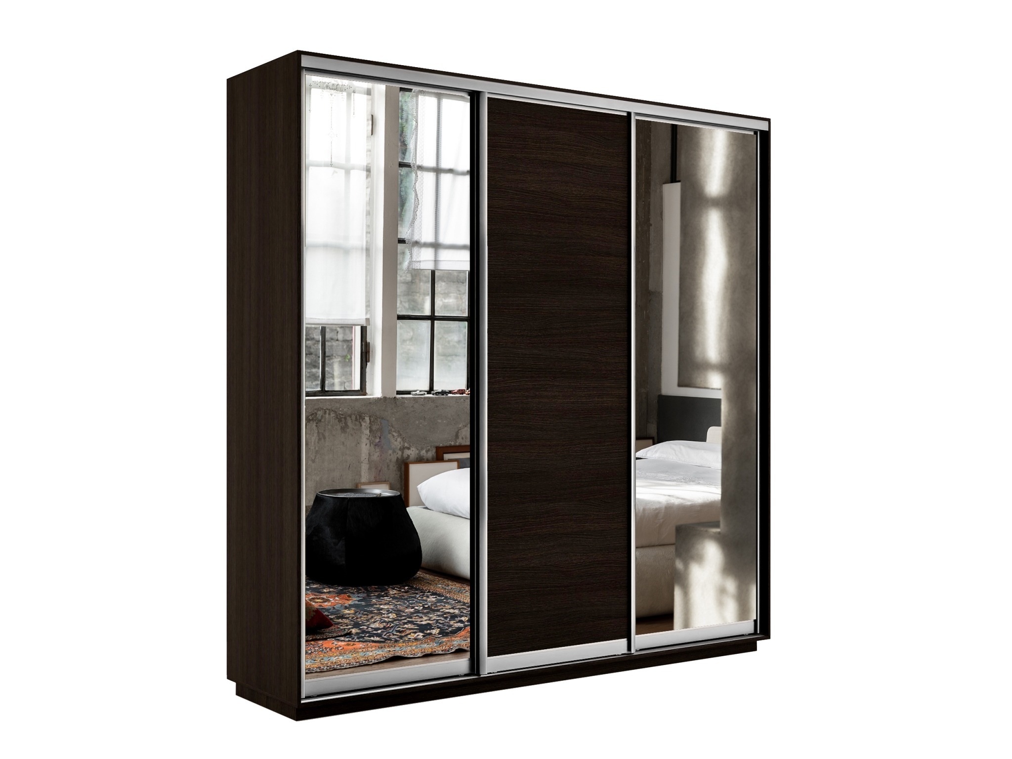 Отзывы о Столплит Шкаф-купе Экспресс Медиум (2 зеркала) трио 2200 x 2400 x 450 Венге